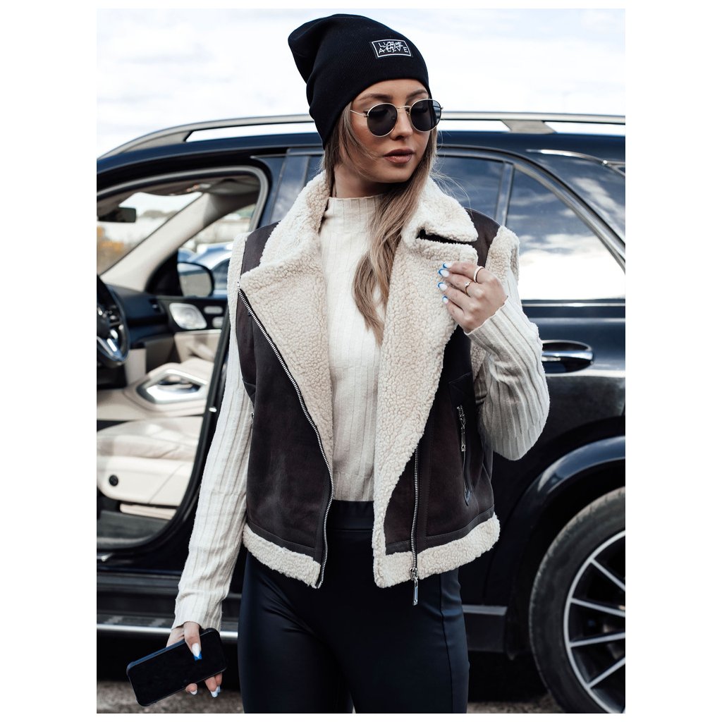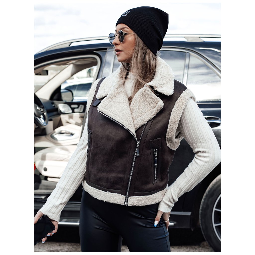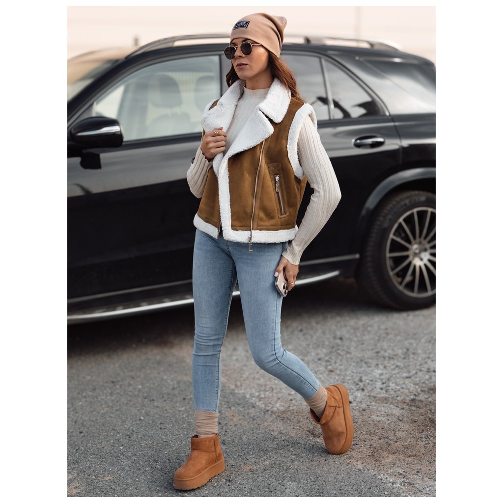 Dámská semišová vesta s podšívkou z ovčí kůže WOOLZIP Dstreet TY4741