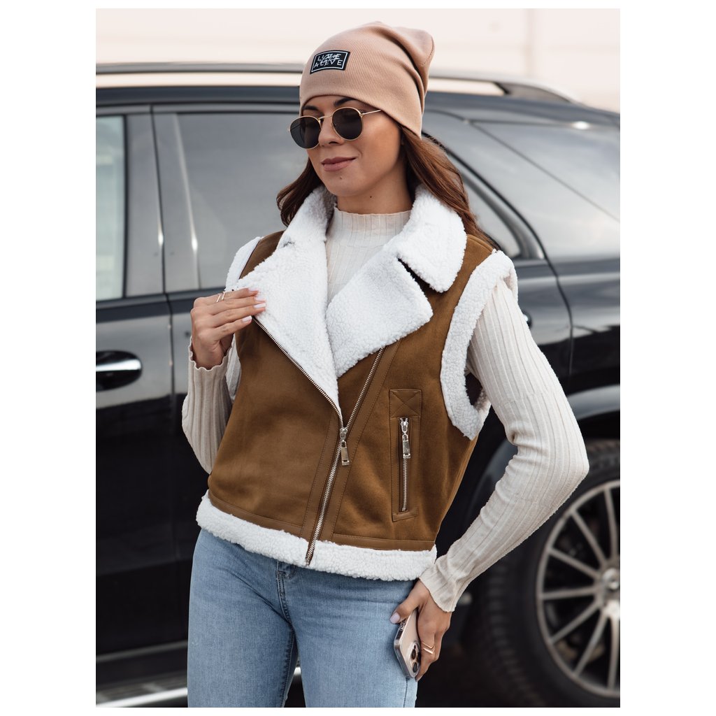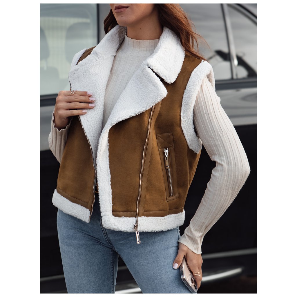 Dámská semišová vesta s podšívkou z ovčí kůže.
