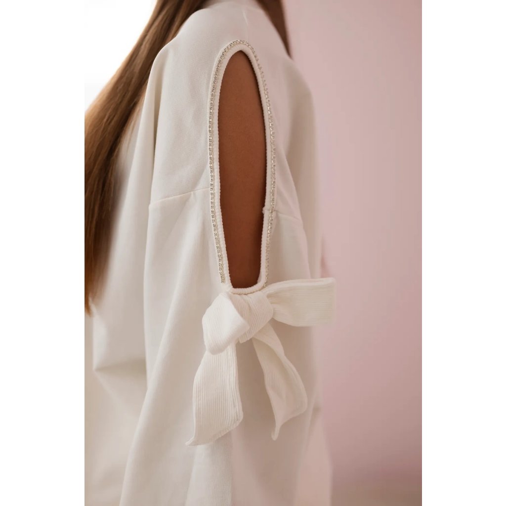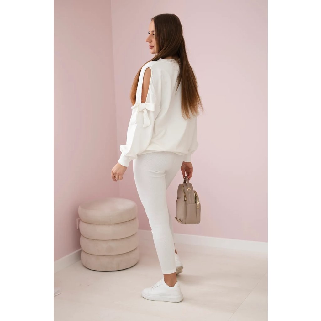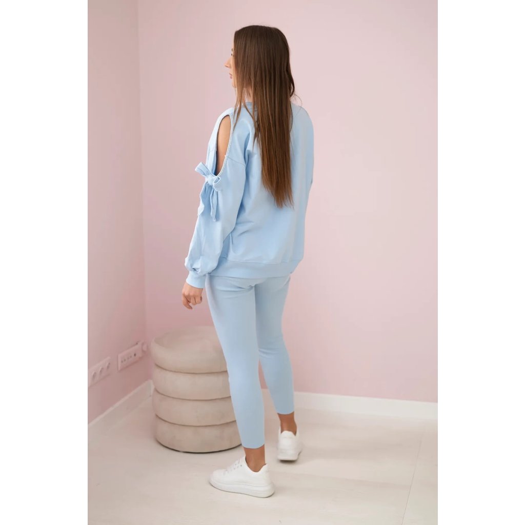 Set mikiny s mašlí na rukávech a legín je okouzlující a stylová nabídka pro ženy, které oceňují pohodlí a módní vzhled. Mikina s mašlemi na rukávech dodává kompletu jemnost a dívčí šarm a dodává mu jedinečný charakter. Mikina, vyrobená z měkkého a na dotek příjemného materiálu, zajišťuje pohodlí při nošení po celý den a přitom vypadá elegantně a stylově. Mašle na rukávech jsou zajímavým detailem, který odlišuje tento set od ostatních. Legíny, které jsou součástí tohoto setu, poskytují pohodlí a volnost pohybu, perfektně padnoucí na postavu. Díky elastickému materiálu legíny dokonale padnou na tělo a zvýrazňují ženské tvary. Set mikiny s mašlí na rukávech a legín je perfektní volbou pro mnoho příležitostí, jak pro pohodové večery doma, tak pro neformální setkání s přáteli nebo procházky venku. Díky svému okouzlujícímu designu a kvalitnímu zpracování bude tato souprava nenahraditelným prvkem vašeho šatníku a dodá kouzlo a pohodlí každému stylingu.