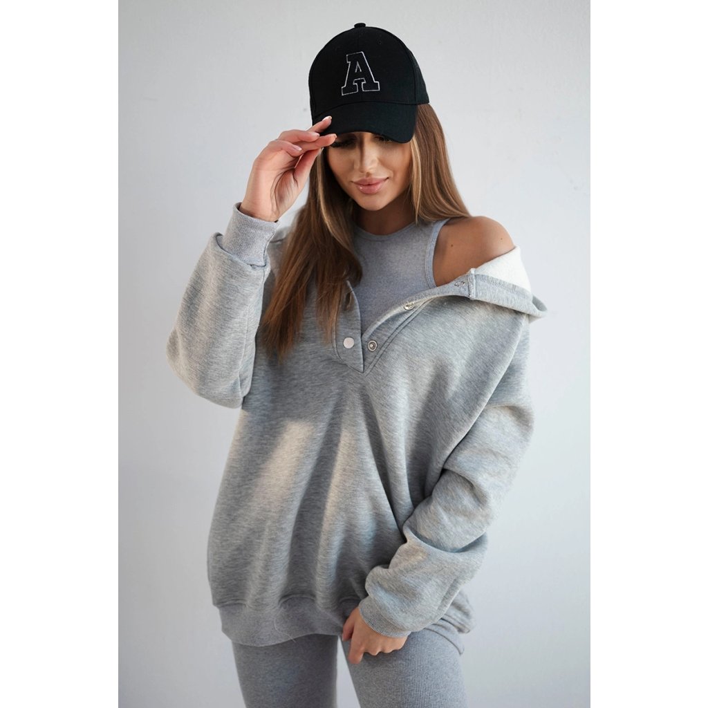 Třídílný set sestávající z mikiny, žebrovaných legín a topu je ideálním oblečením pro ženy, které ocení módní a pohodlný styl. Tato mikina s dlouhými rukávy vám zajistí pohodlí a teplo v chladných dnech a zároveň dodá celému vzhledu charakter. Top zvýrazní ženskou siluetu, zatímco žebrované legíny vám dodají jemnou eleganci a umožní vám vyniknout v davu. Taková souprava je ideální pro každodenní i formálnější příležitosti a díky různým barevným variantám ji může každá žena přizpůsobit svému vkusu a stylu.