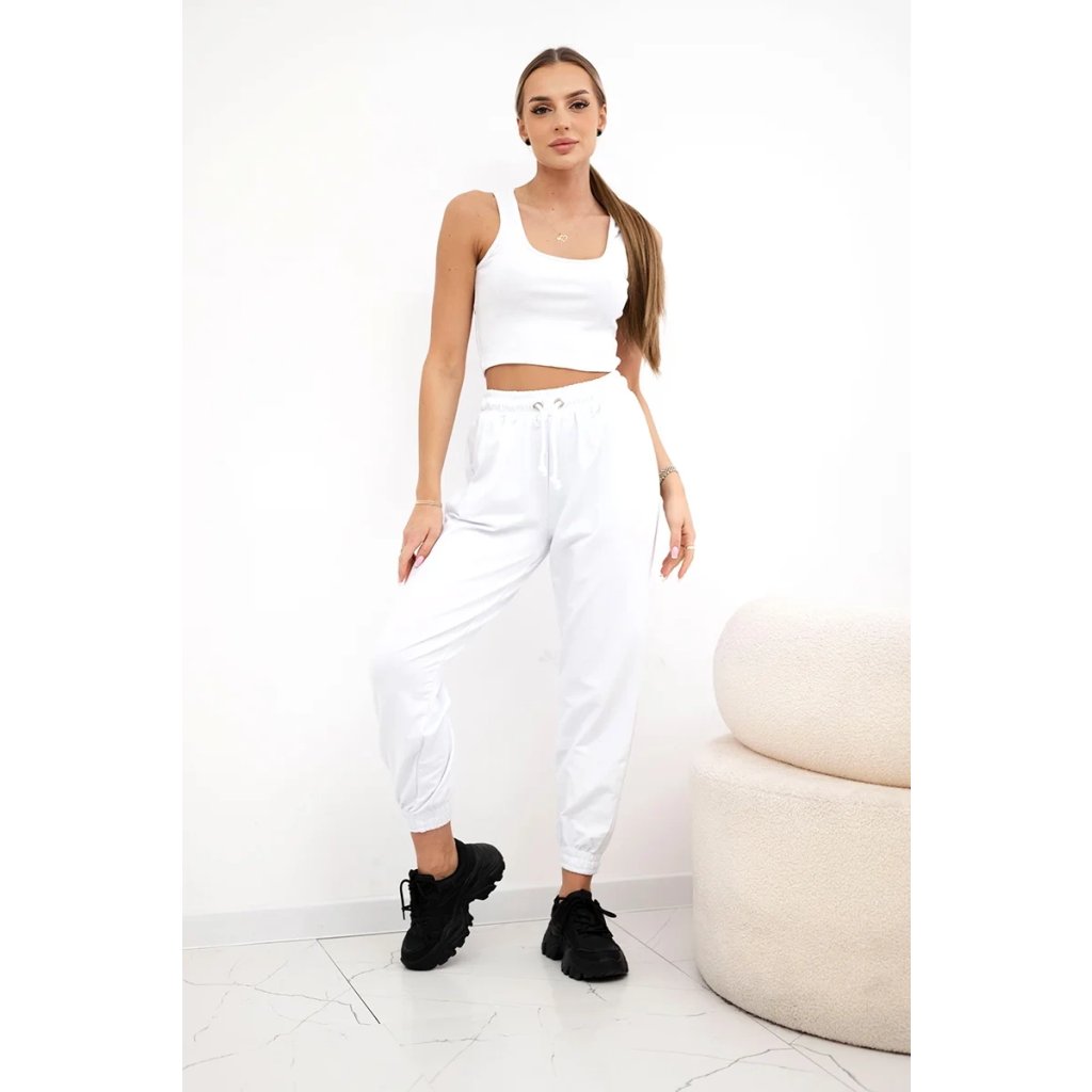 Představujeme vám sadu - top a tepláky. Top bez ramínek z žebrovaného materiálu, hladké kalhoty. Sada je vyrobena z vysoce kvalitního materiálu.