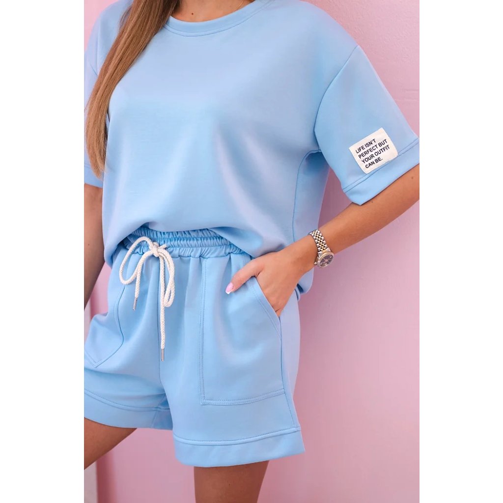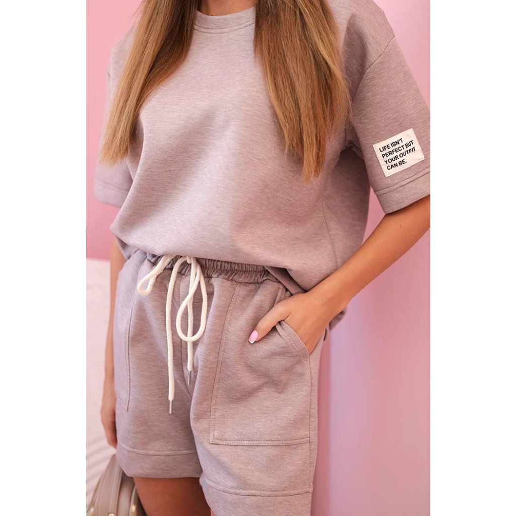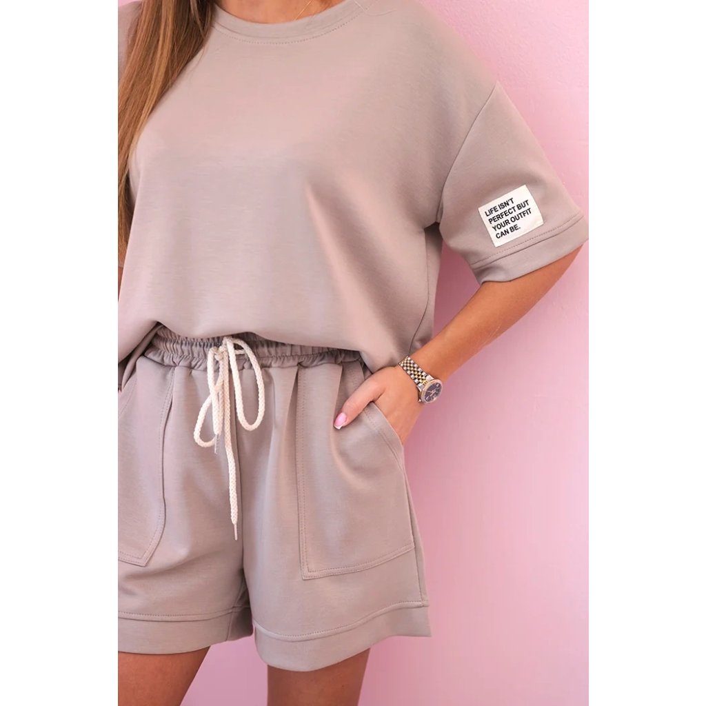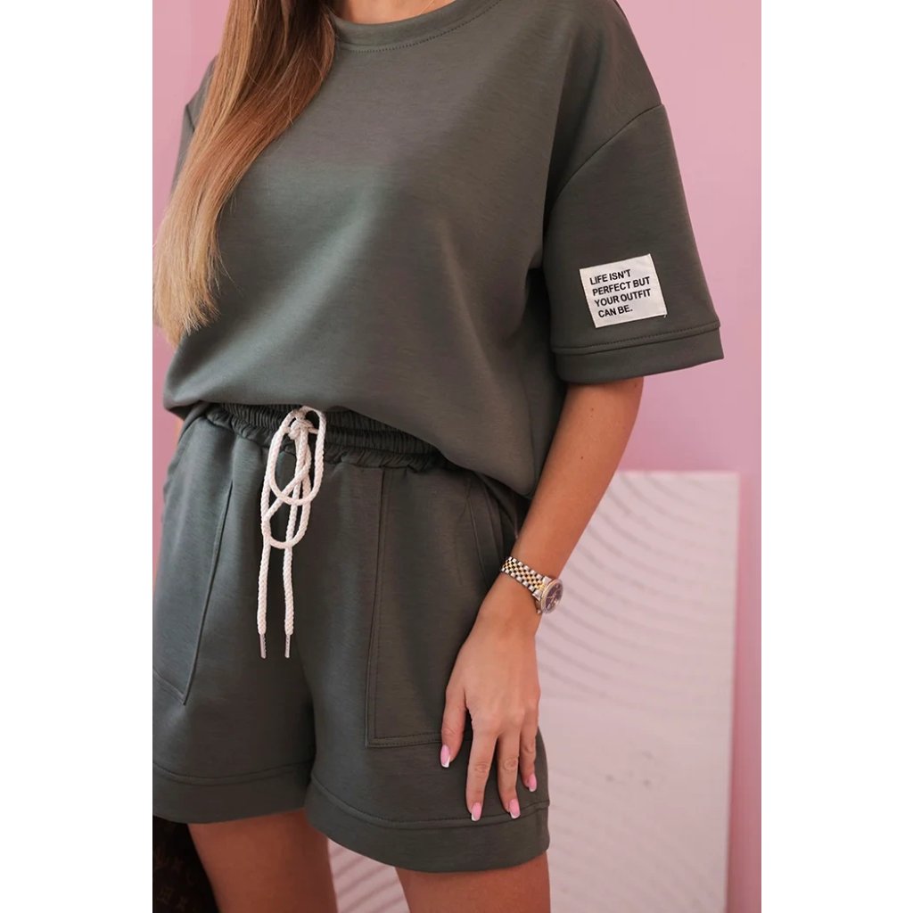 Pohodlný, stylový a praktický – tento dámský komplet je ideální volbou na jaro a léto! Skládá se z volné halenky s krátkým rukávem a přiléhavých šortek s vysokým pasem a elastickým páskem se šňůrkou, které zajišťují maximální pohodlí při nošení. Jemný materiál s příměsí elastanu krásně padne na postavu a poskytuje pocit lehkosti a volnosti. Minimalistický design s malým potiskem na rukávu dodává moderní charakter. Tato sada je skvělým návrhem na procházky, výlety, lenivé víkendy nebo neformální setkání s přáteli. Kombinujte ji s teniskami nebo pantoflemi a vytvoříte módní a pohodlný outfit.