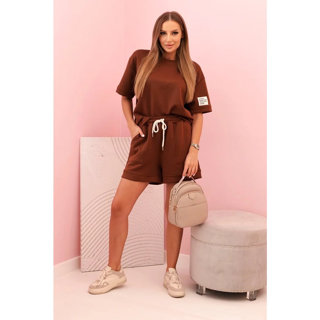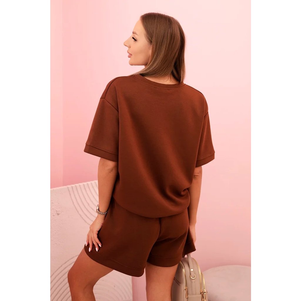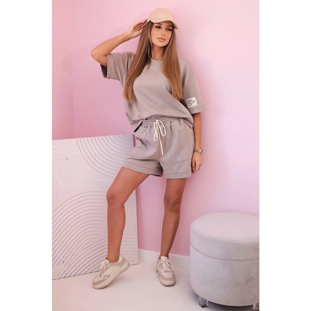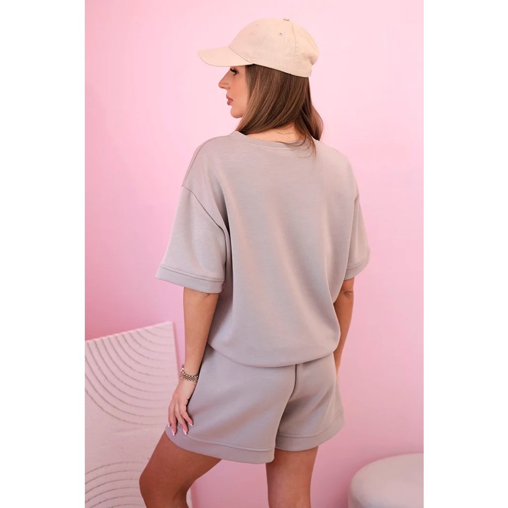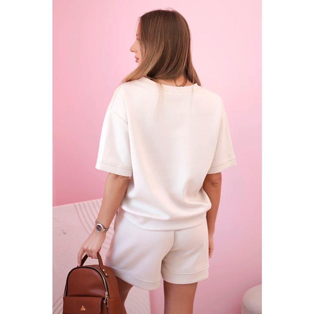 Pohodlný, stylový a praktický – tento dámský komplet je ideální volbou na jaro a léto! Skládá se z volné halenky s krátkým rukávem a přiléhavých šortek s vysokým pasem a elastickým páskem se šňůrkou, které zajišťují maximální pohodlí při nošení. Jemný materiál s příměsí elastanu krásně padne na postavu a poskytuje pocit lehkosti a volnosti. Minimalistický design s malým potiskem na rukávu dodává moderní charakter. Tato sada je skvělým návrhem na procházky, výlety, lenivé víkendy nebo neformální setkání s přáteli. Kombinujte ji s teniskami nebo pantoflemi a vytvoříte módní a pohodlný outfit.