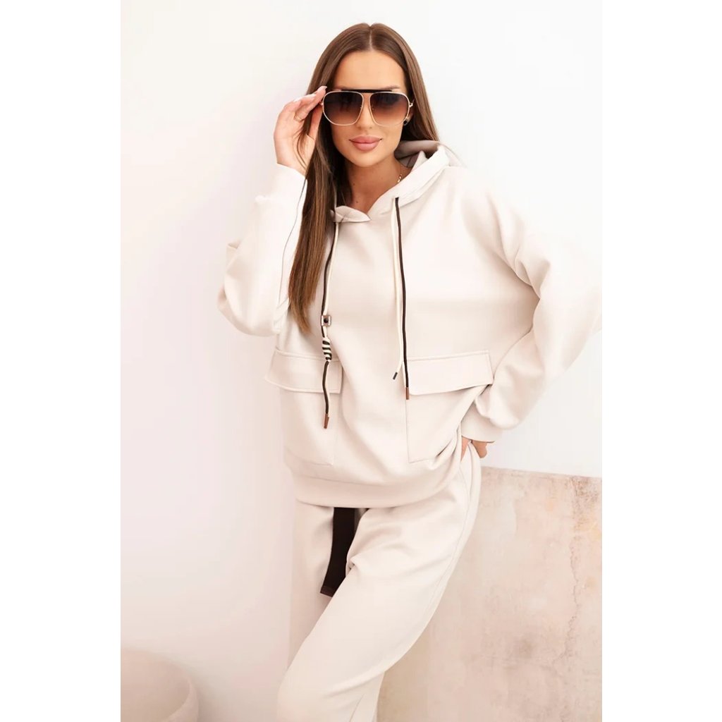 Dámská souprava máslová mikina s kapucí a kalhoty s páskem Mata