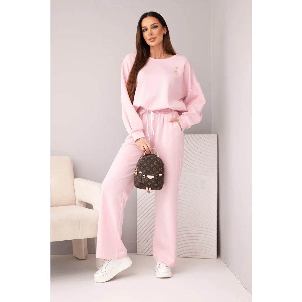 Střih: volná mikina s elastickým pasem + kalhoty s rovnými nohavicemi