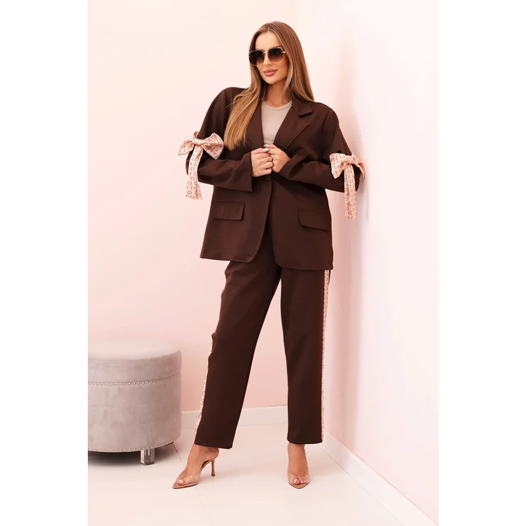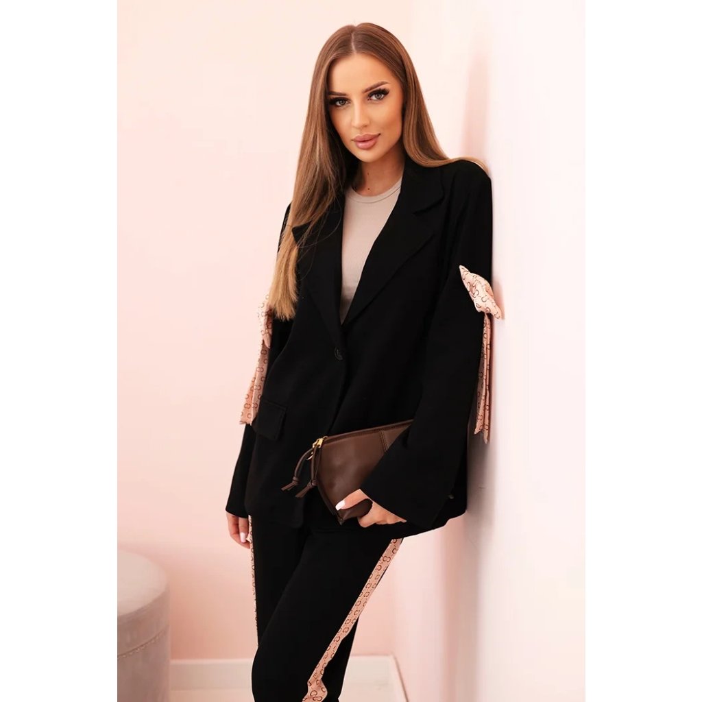 Dámská souprava s viskózou – sako s klopami a kalhoty s lampasem Alina