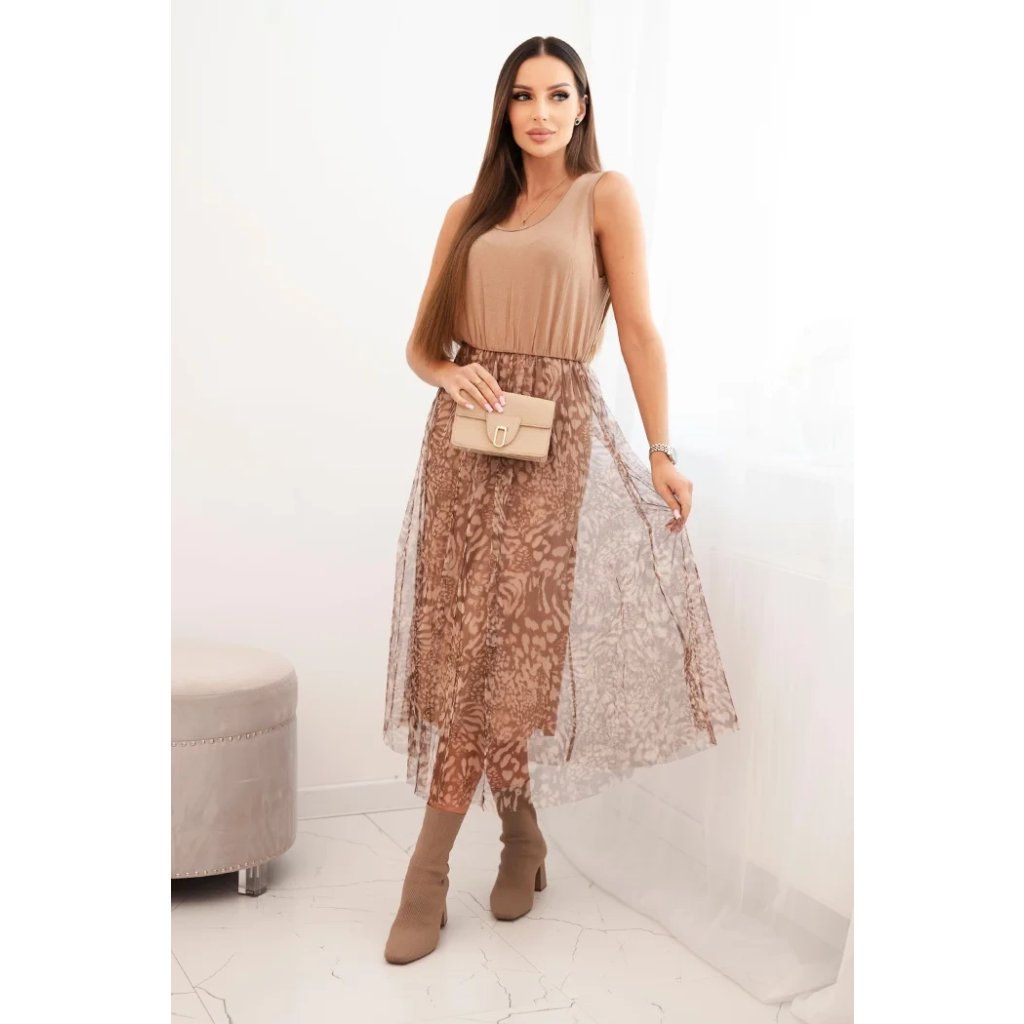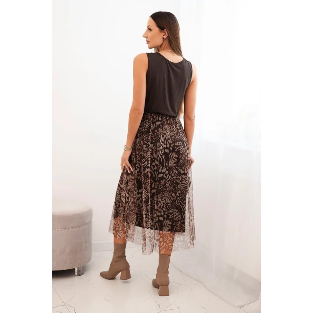Šaty: viskózový vršek a tylový, mírně rozšířený spodek se zvířecím vzorem