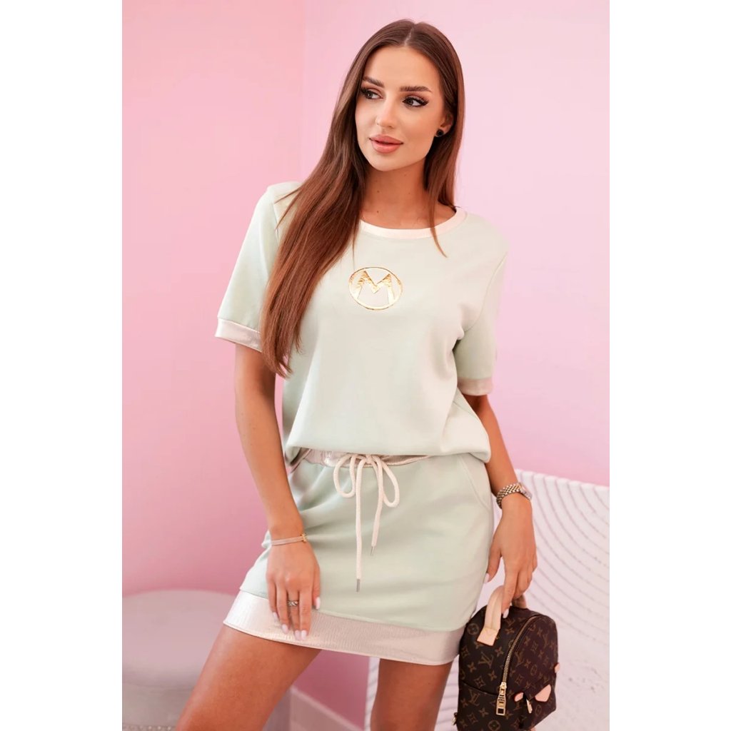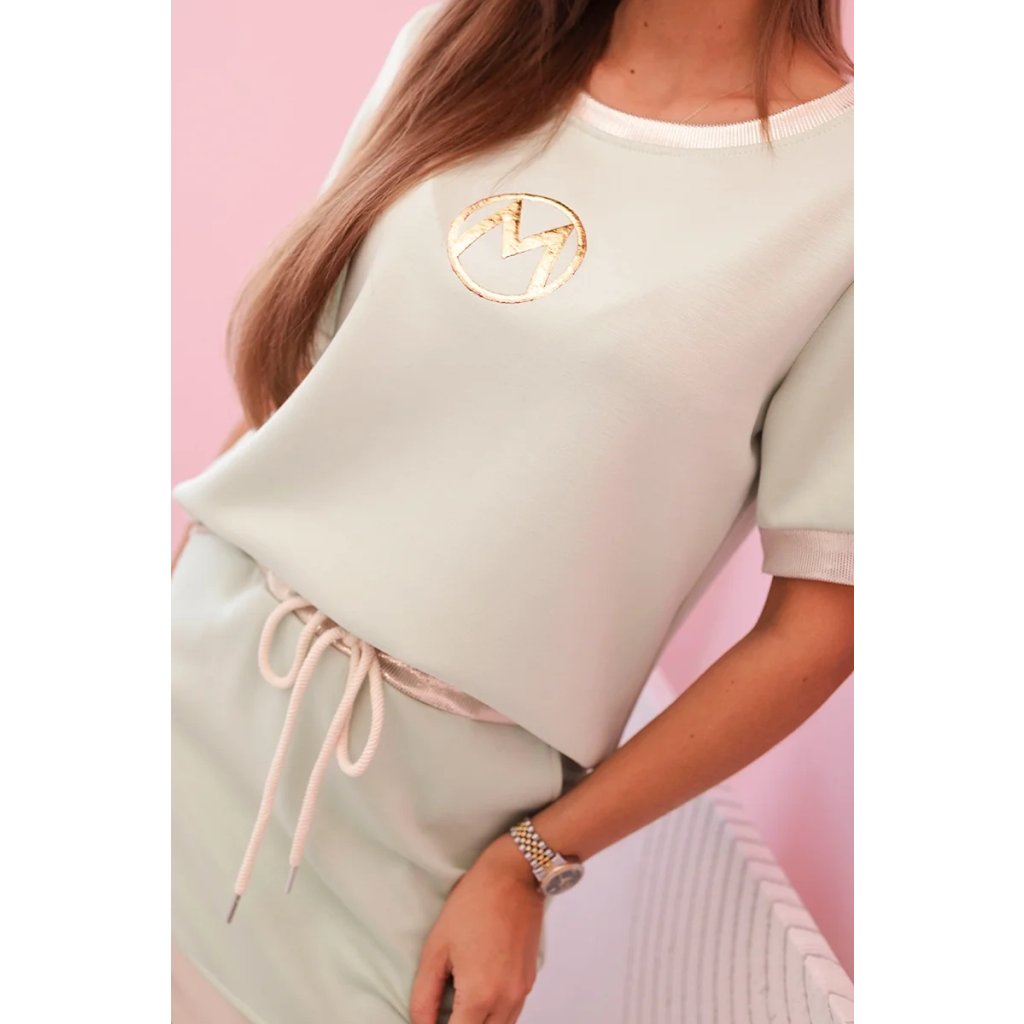 Stylová dámská souprava z lehké, prodyšné viskózy s příměsí elastanu. Souprava obsahuje halenku s krátkým rukávem a sukni s elastickým pasem a šňůrkou, která umožňuje dokonalé přizpůsobení v pase. Celý set je ozdoben zlatými lemy u výstřihu, rukávů, spodní části halenky a sukně, což dodává soupravě elegantní vzhled. Ideální volba pro každodenní outfity, letní procházky a výlety.