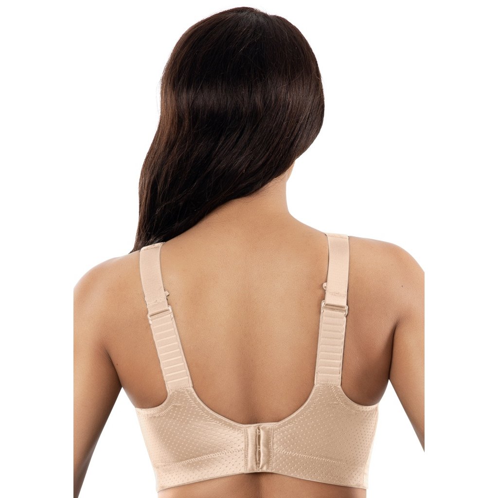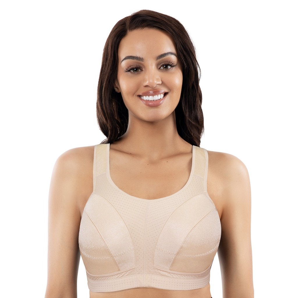 Dámská sportovní podprsenka značky Parfait. Podprsenka je bezkosticová a není vyztužená. Je vhodná pro všechny ženy, které si rády zachovají pohodlí a komfort při sportování. Speciálně střižené košíčky Vám prsa dokonale podrží i díky vyššímu obvodu. Širší ramínka jsou lehce vyztužená a pevně všitá, jsou délkově nastavitelná pomocí háčků. Část pod prsy, na hrudníku a na zádech je perforovaná. V obvodu je našitá širší pružná gumička a celá zadní část je velmi pružná. Zapínání podprsenky je na dva háčky a tři pozice. Vzadu se dají ramínka překřížit.