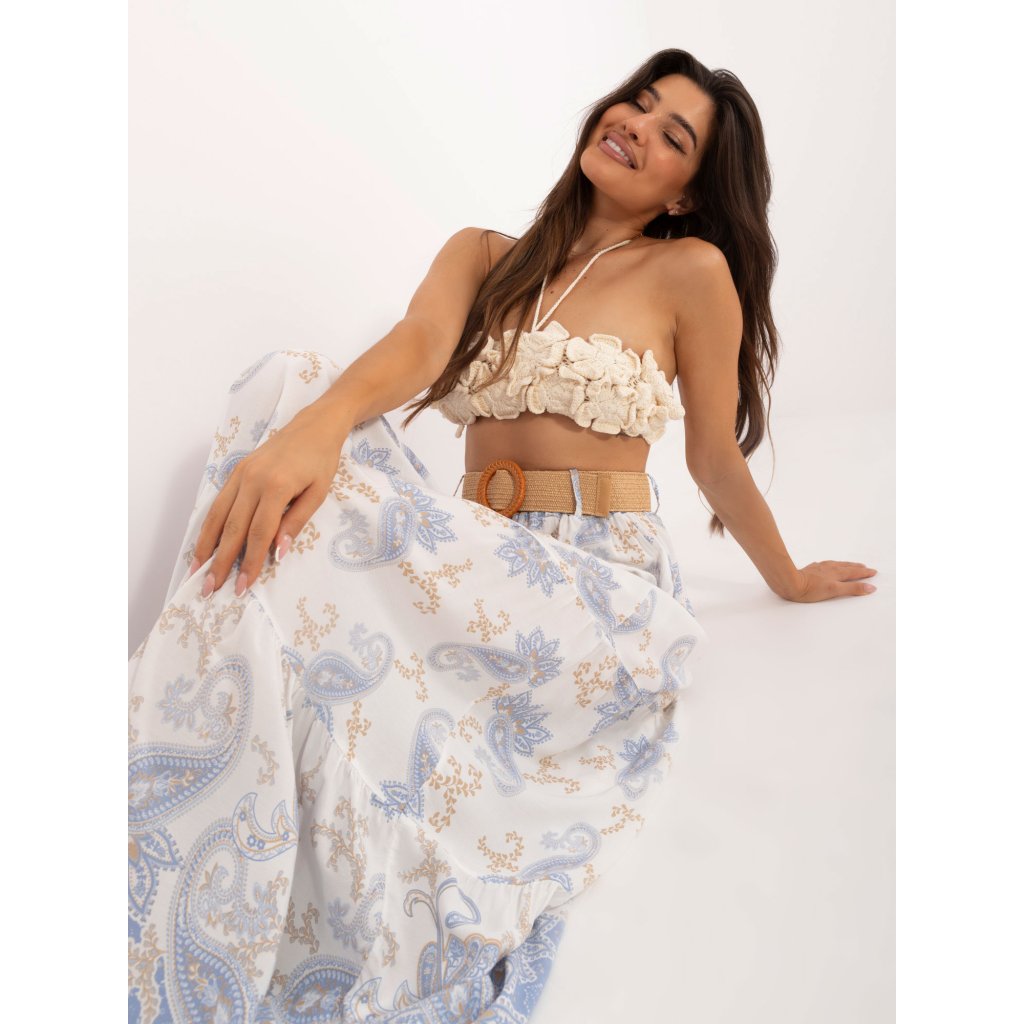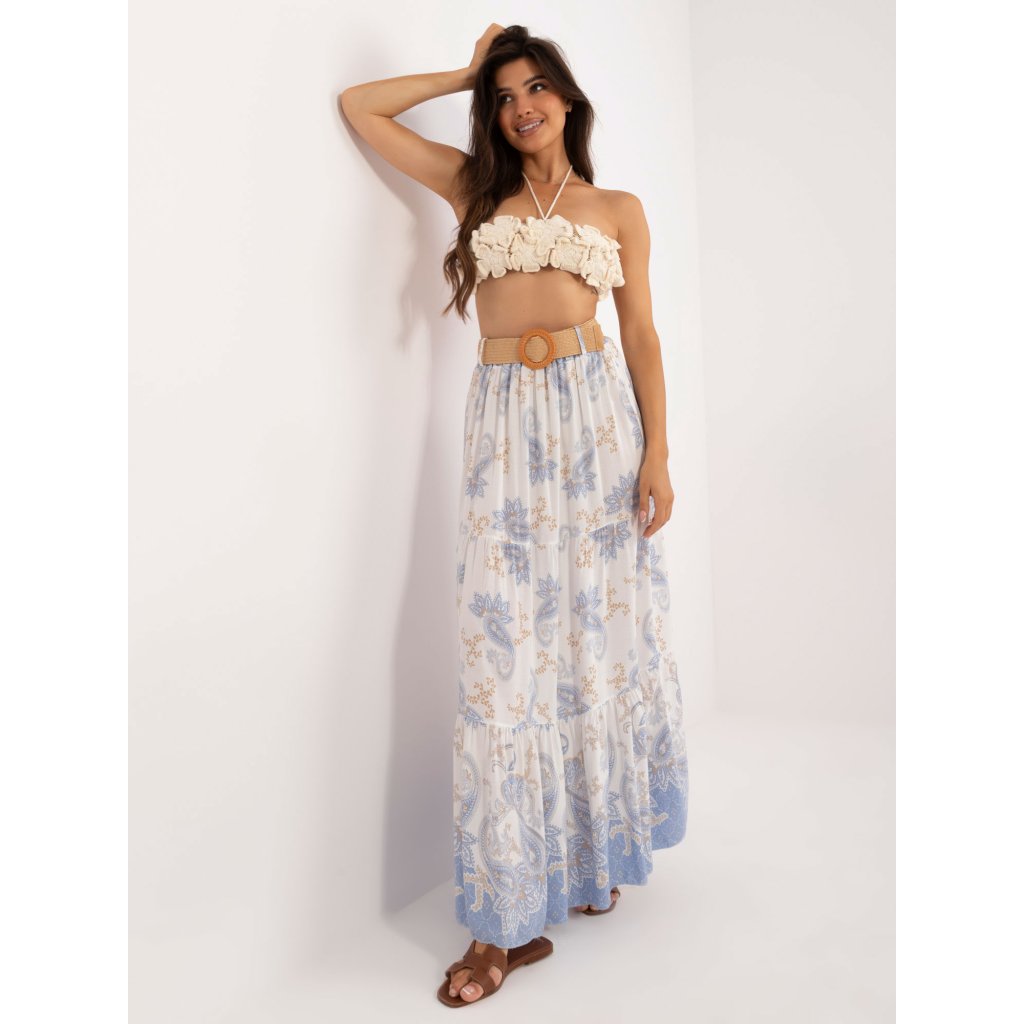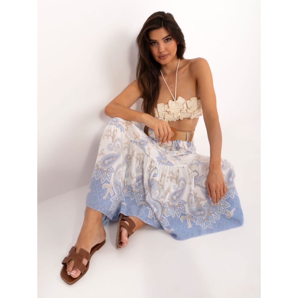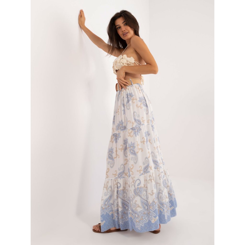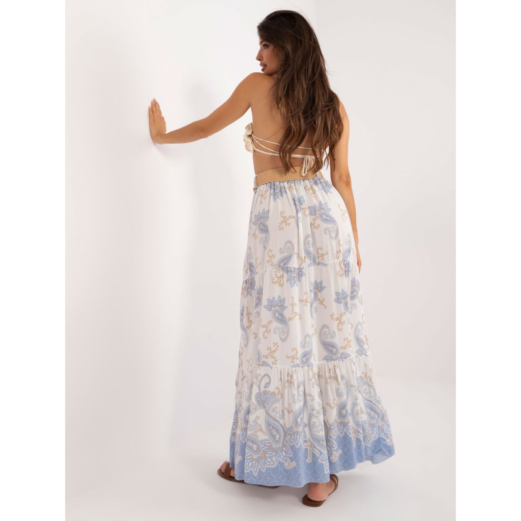 Bílo-zelená boho vzorovaná sukně .