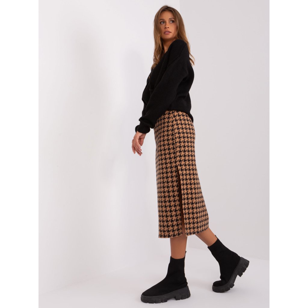 Pletená sukně s pepitovým vzorem .