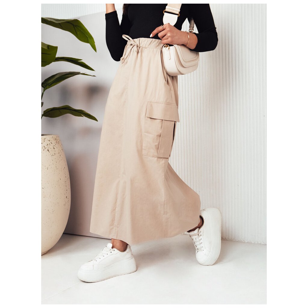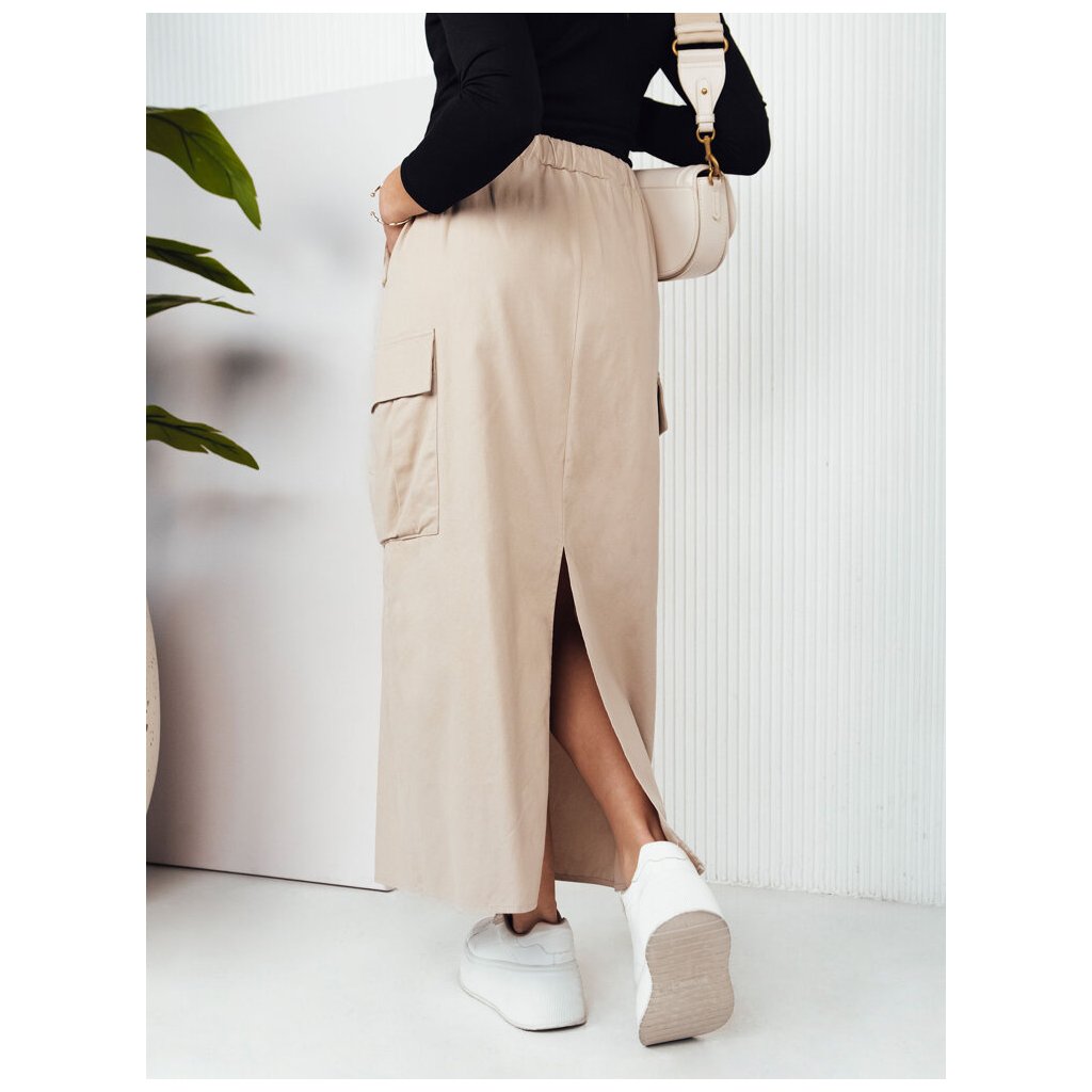 Maxi sukně MERSALS je perfektní volbou pro ženu, která si cení pohodlí a elegance. Elastický pas zajišťuje perfektní střih, kapsy poskytují funkčnost a rozparek vzadu zaručuje volnost a sebevědomí při každém kroku.