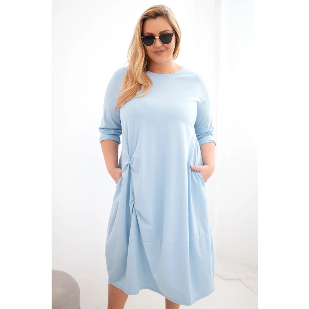 Tento dámský šaty s řasením na boku je ideální volbou pro ženy, které si cení pohodlí a stylu. Vyrobeno z vysoce kvalitní bavlny s příměsí elastanu, poskytuje příjemný pocit na kůži a jemné přizpůsobení postavě. Volný střih umožňuje volnost pohybu a jemné řasení vpředu dodává originální charakter celé stylizaci.