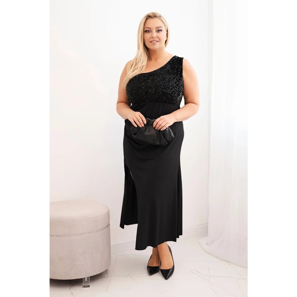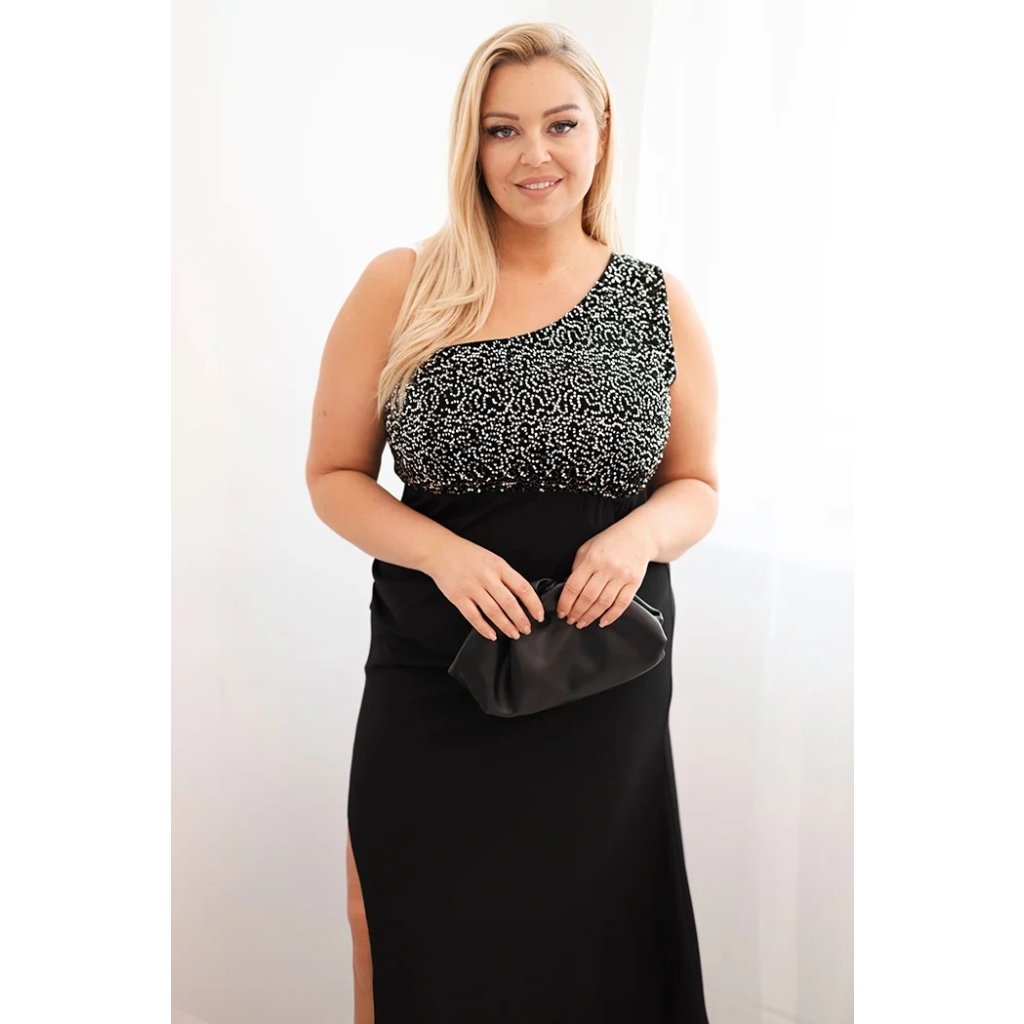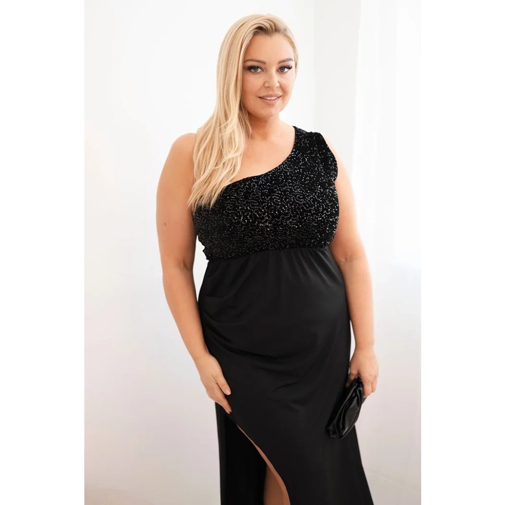 Elegantní a ženské večerní šaty na jedno rameno jsou ideálním návrhem na výjimečné příležitosti, jako jsou svatby, bankety nebo elegantní večeře. Vrchní část šatů je ozdobena lesklými flitry, které dodávají lesk a přitahují pohledy, zatímco spodní část vyrobená z splývavého materiálu se krásně pohybuje a podtrhuje siluetu.