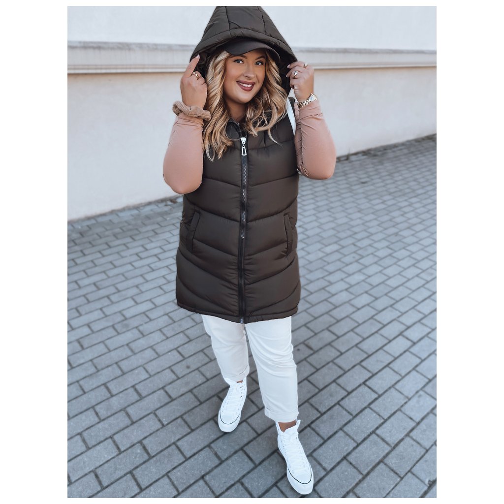 Prošívaná vesta trochu delšího střihu z matného materiálu vás vždy odliší od davu. Vesta se zapíná na zip. Model má neodepínatelnou kapuci a kapsy na patentky. Dostupné v několika barvách. Je to rozhodně MUST HAVE nadcházející sezóny. Bude perfektní na podzimní a zimní období, protože je zateplený. Vesta se dá ve spodní části stáhnout.