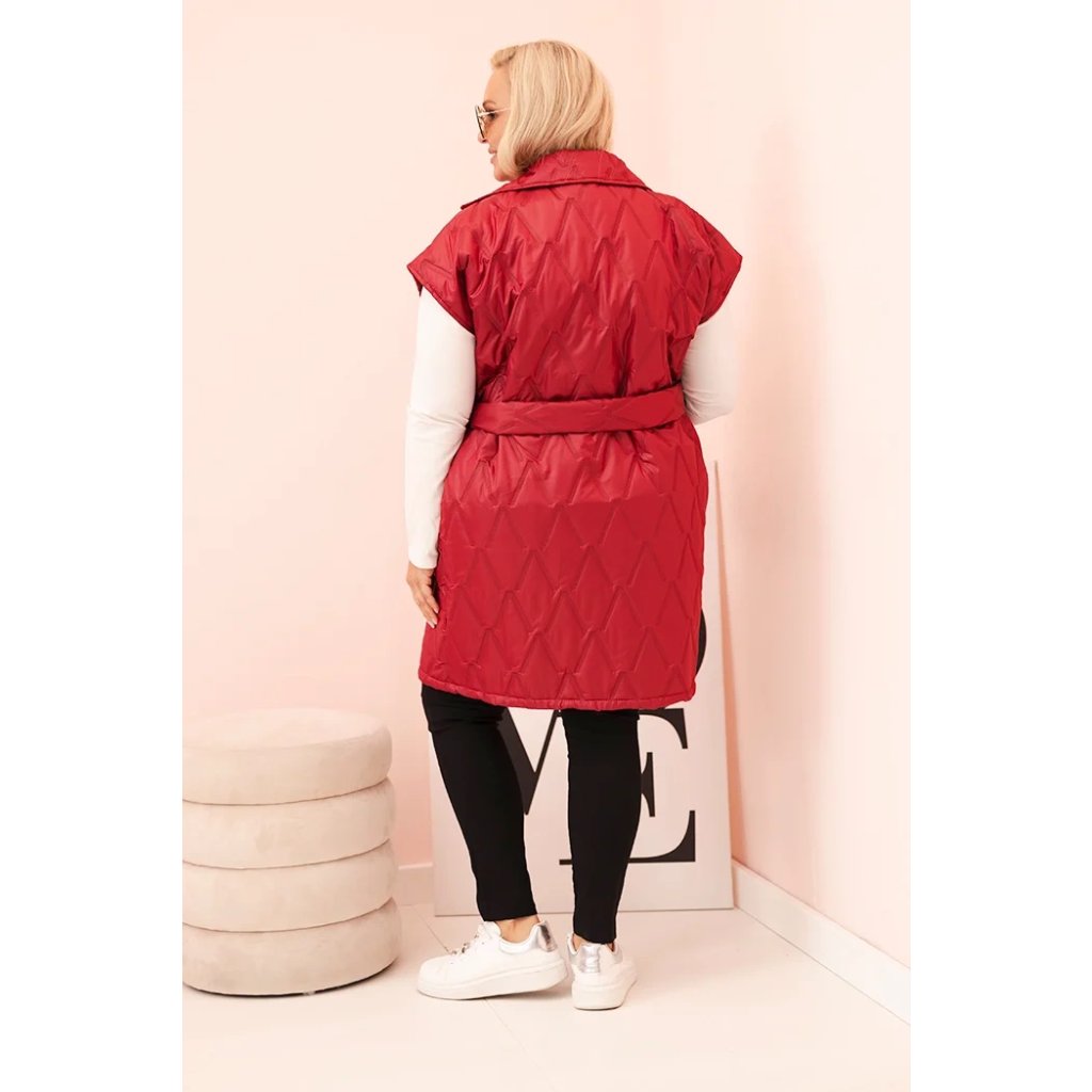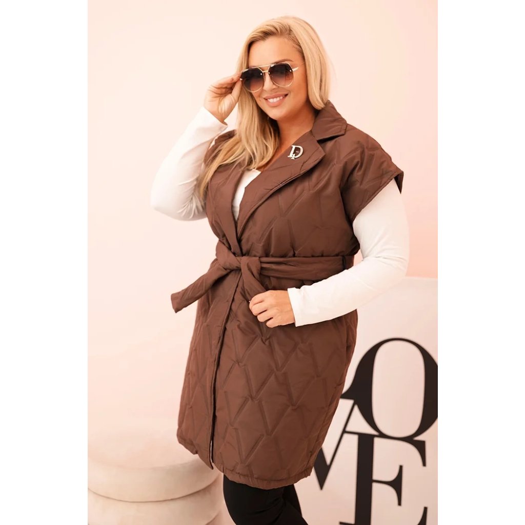 Dámská vesta Plus Size prošívaná s páskem a límcem