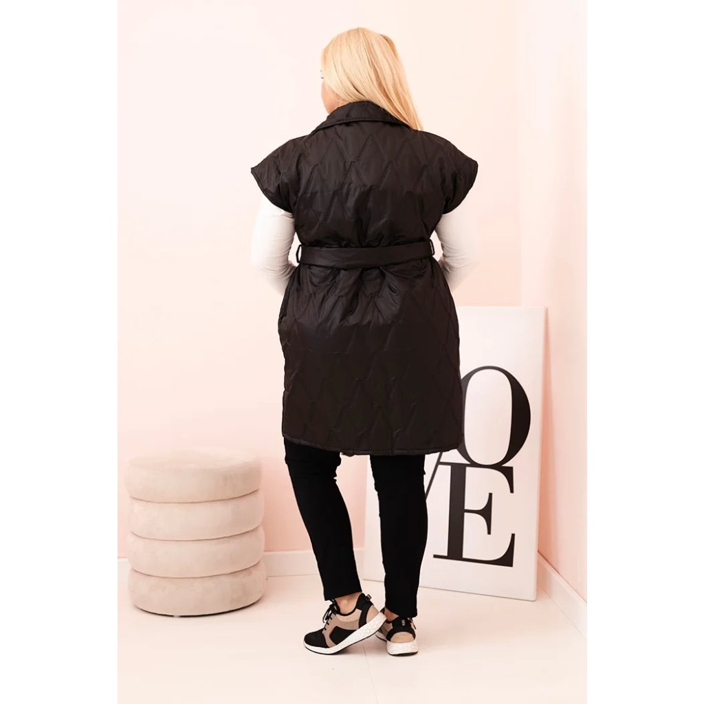 Dámská vesta Plus Size prošívaná s páskem a límcem
