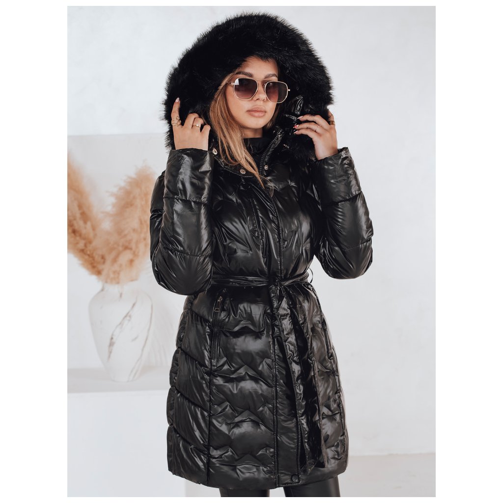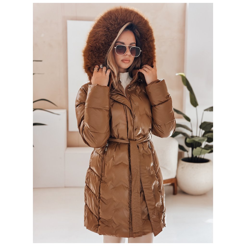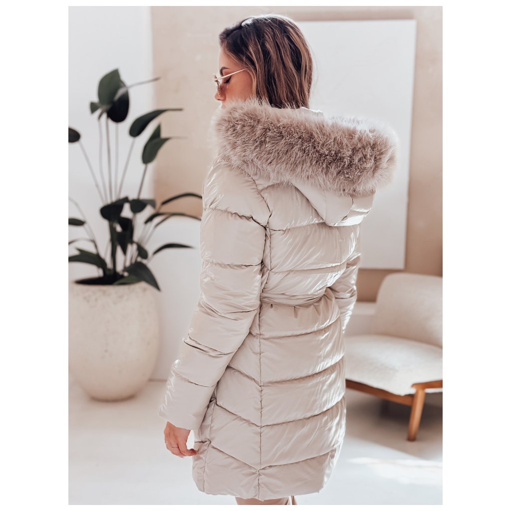 Dlouhá prošívaná zimní bunda se stahovacím páskem a kapucí lemovanou měkkou kožešinou. Poskytuje účinnou ochranu před chladem a větrem a zároveň vypadá stylově a žensky. Ideální pro chladnější dny, jak pro městské, tak i pro ležérní outfity.