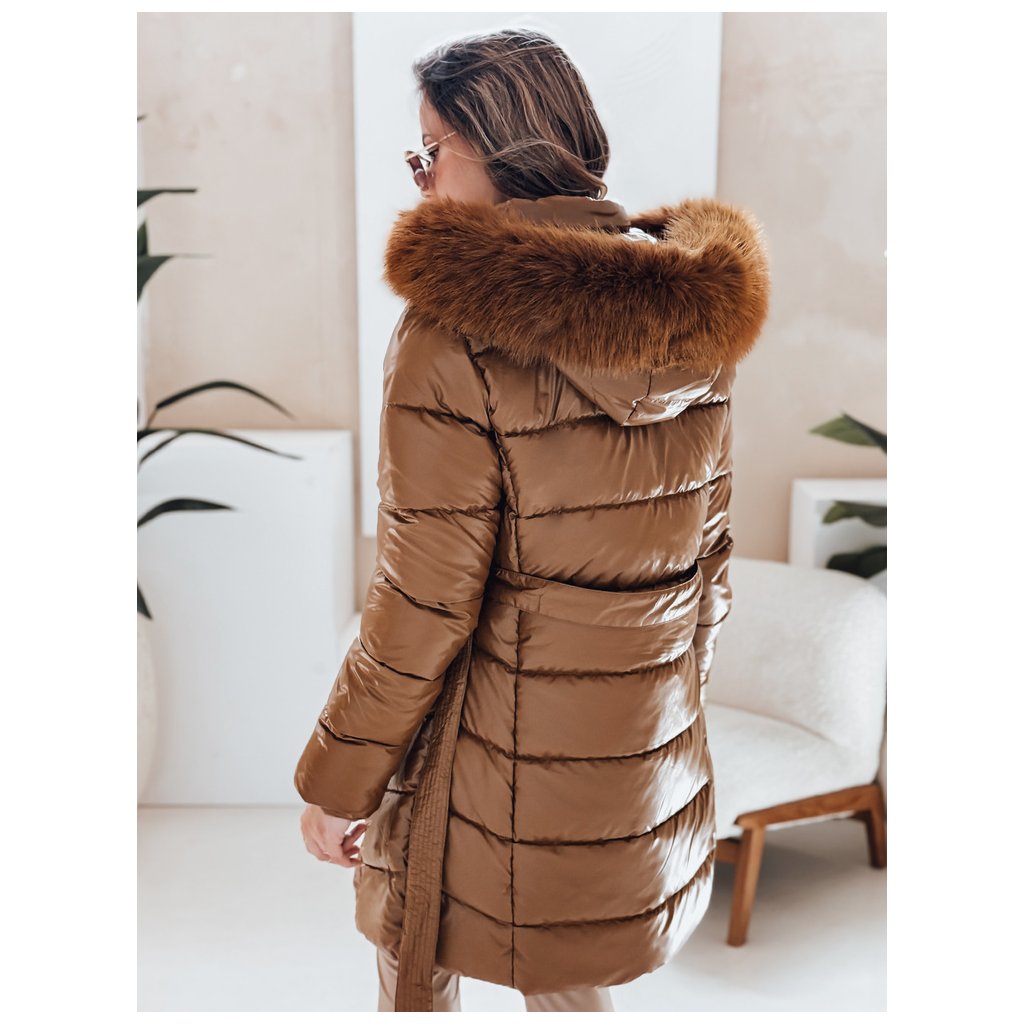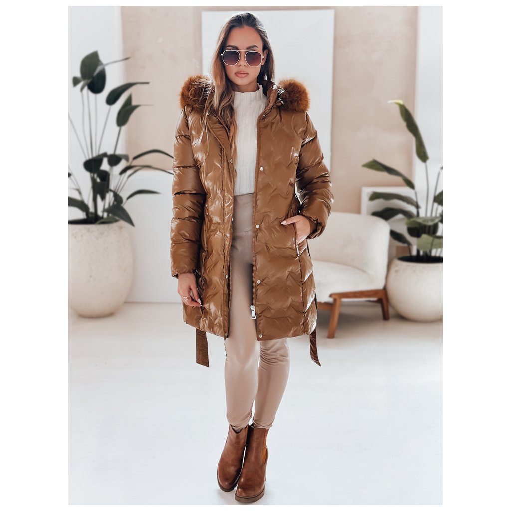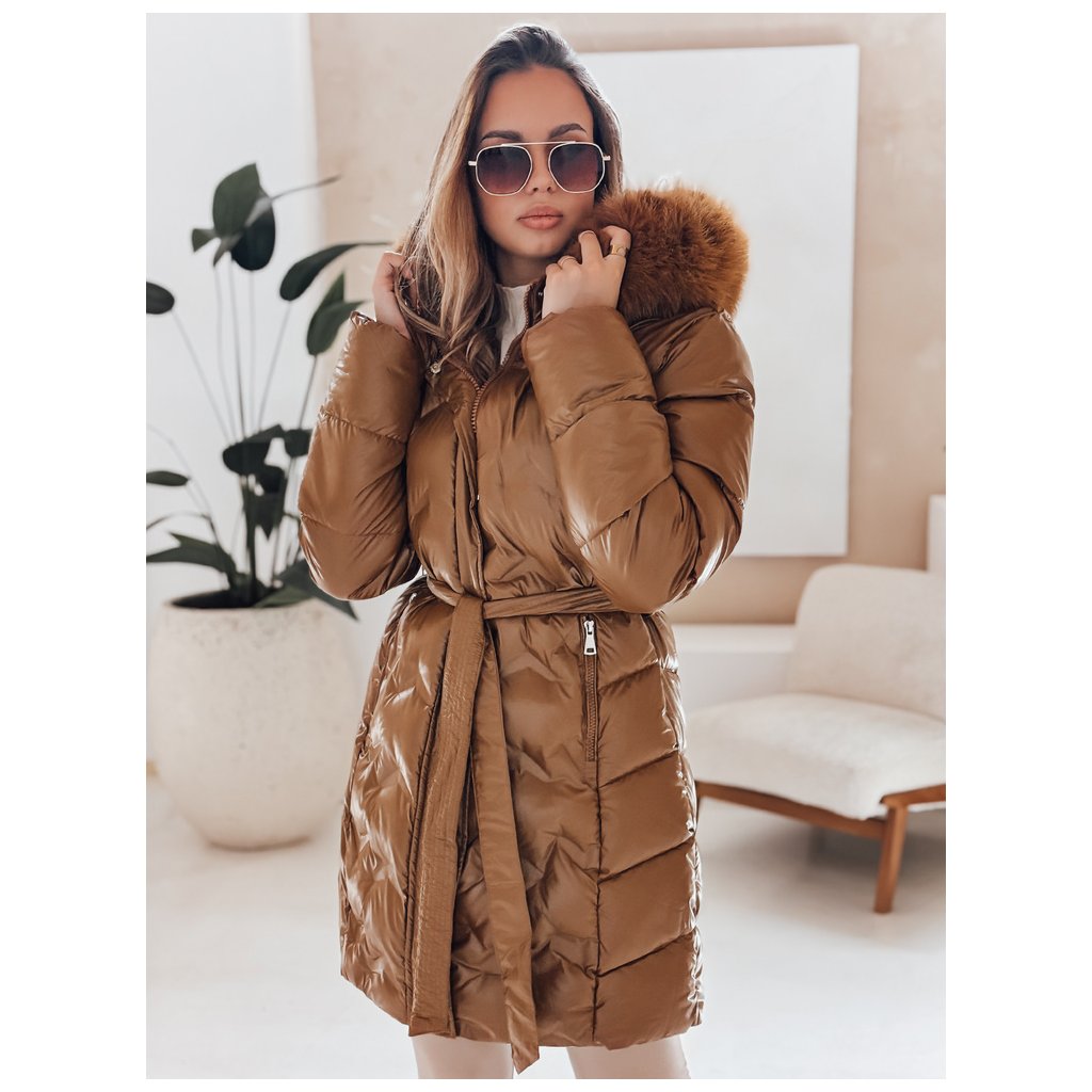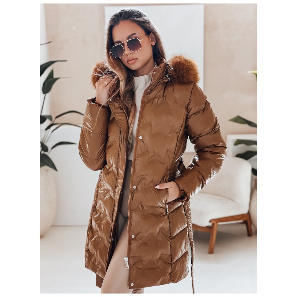 Dlouhá prošívaná zimní bunda se stahovacím páskem a kapucí lemovanou měkkou kožešinou. Poskytuje účinnou ochranu před chladem a větrem a zároveň vypadá stylově a žensky. Ideální pro chladnější dny, jak pro městské, tak i pro ležérní outfity.