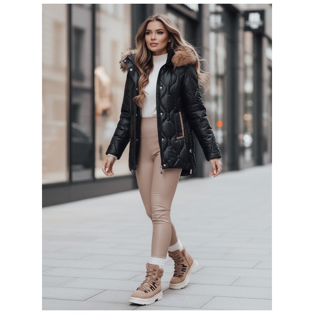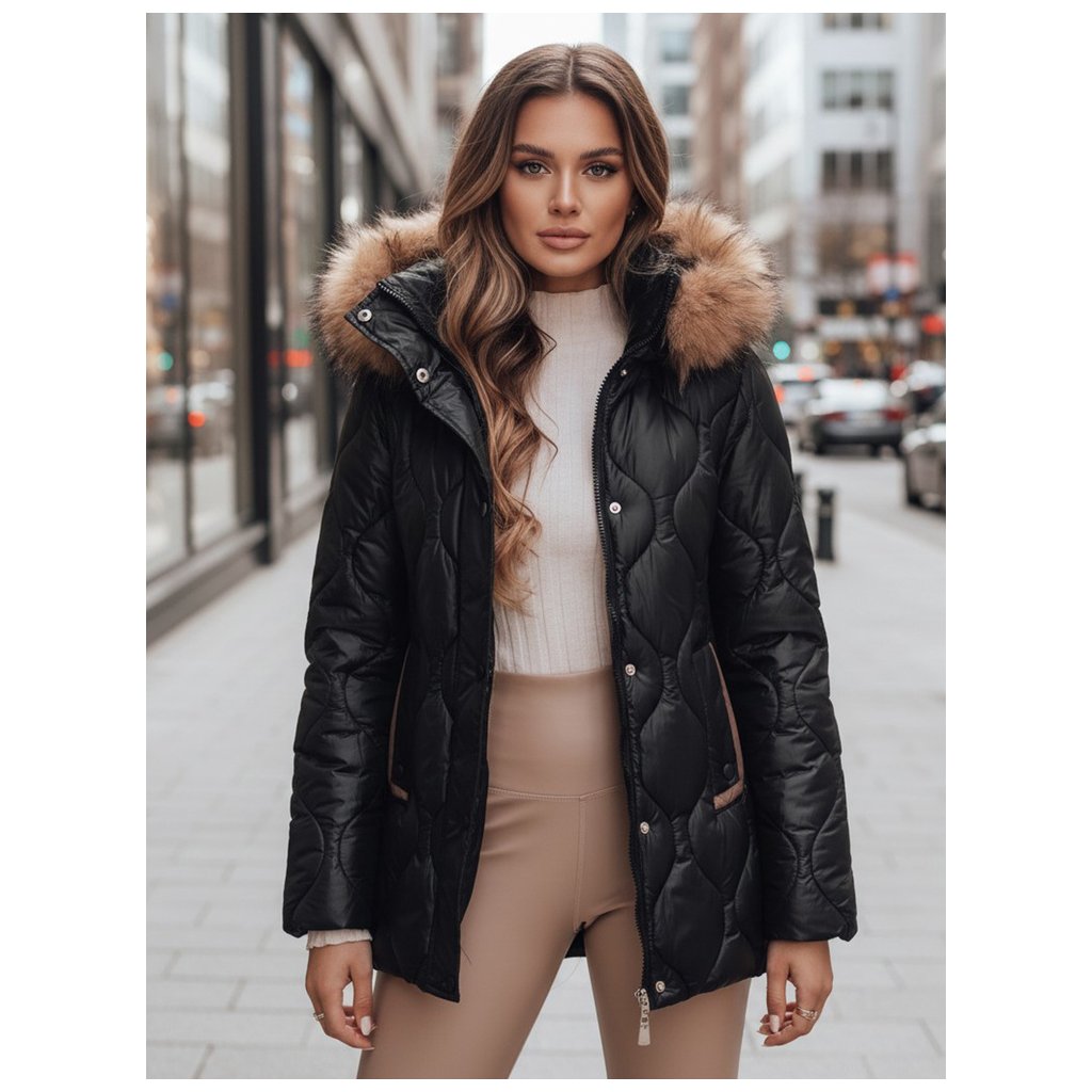 Dámská zimní bunda s kapucí a kožíškem LUMORE Dstreet TY4723 - výprodej