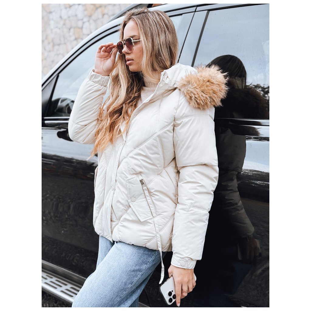 Tento model je vyroben z odolného a tvarově stálého polyesteru. Prošívaná textura nejen zlepšuje tepelnou izolaci, ale také dodává bundě moderní nádech. Odnímatelná kapuce s kožešinovým lemováním umožňuje snadno měnit vzhled a funkčnost bundy v závislosti na počasí. Střih v délce boků činí bundu vhodnou k mnoha každodenním outfitům a zajišťuje pohodlí při zimních procházkách nebo městských aktivitách.