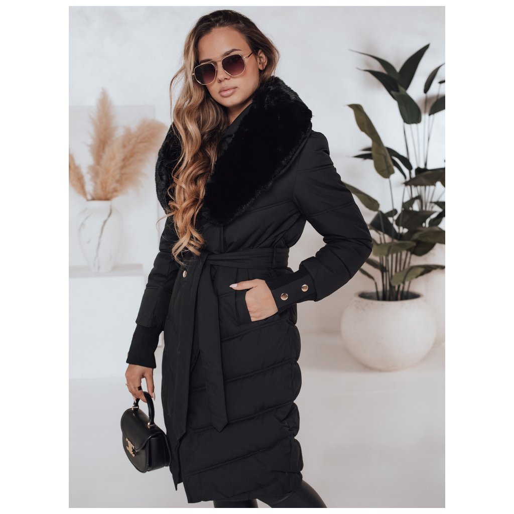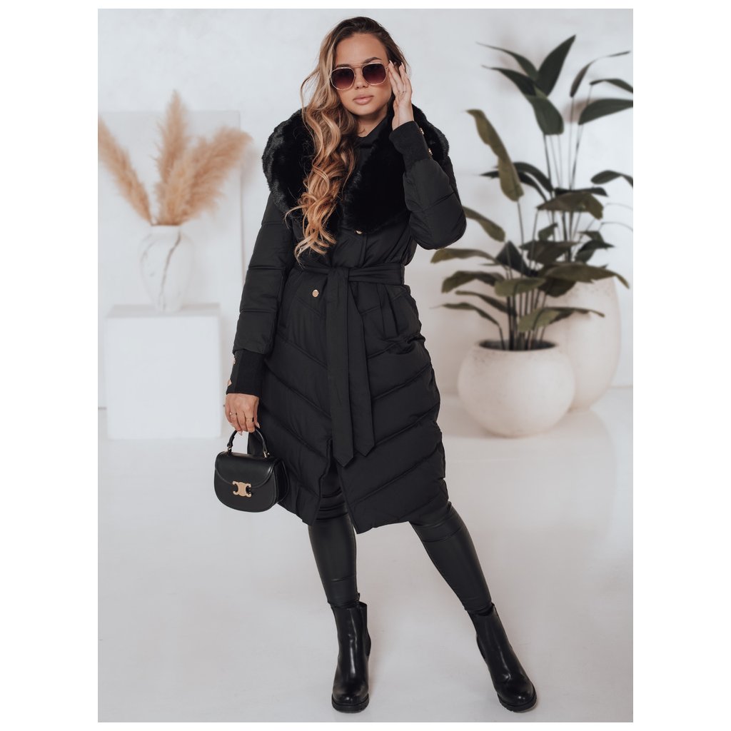 - Dámská zimní bunda. Zapínání na zip. Pevná kapuce. Odnímatelný kožešinový lem. Dvě vnější kapsy. Zavazování v pase. Barva: Černá. Složení: 100% polyester. Míry modelky: