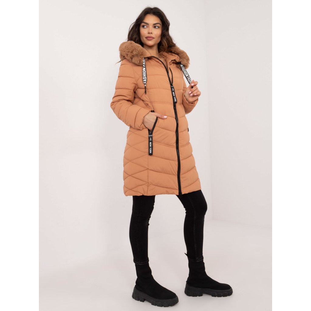 Dlouhá zimní bunda s kapucí.Doplňky: Odnímatelná kožešina