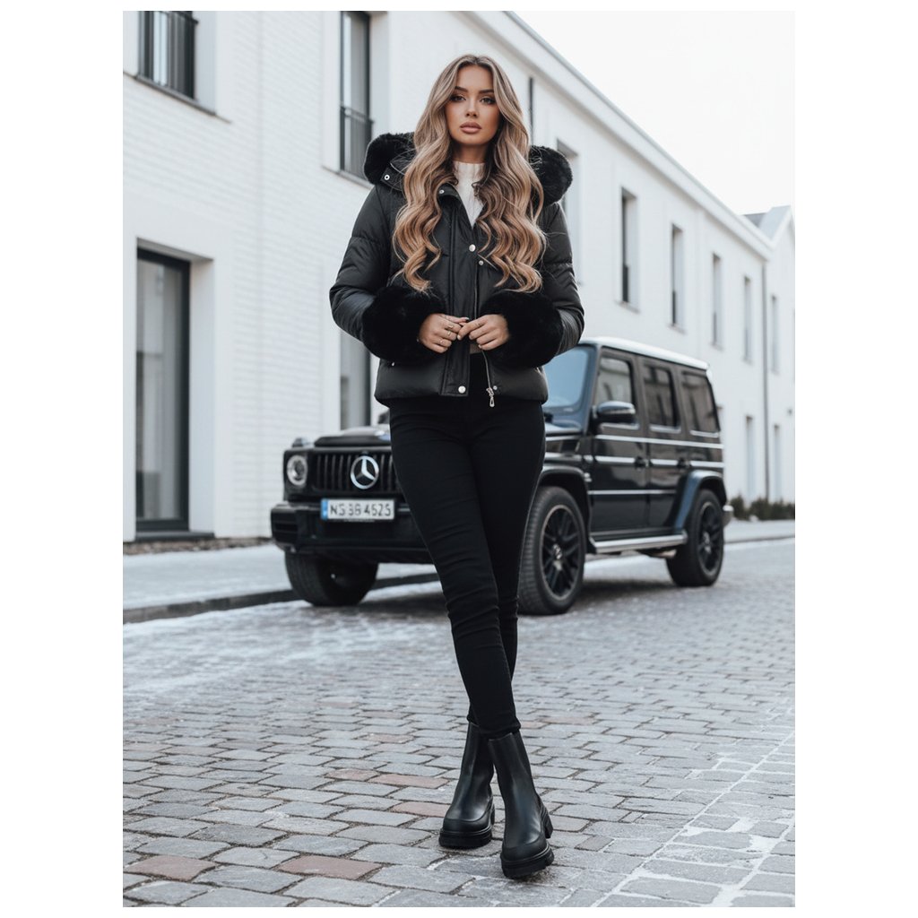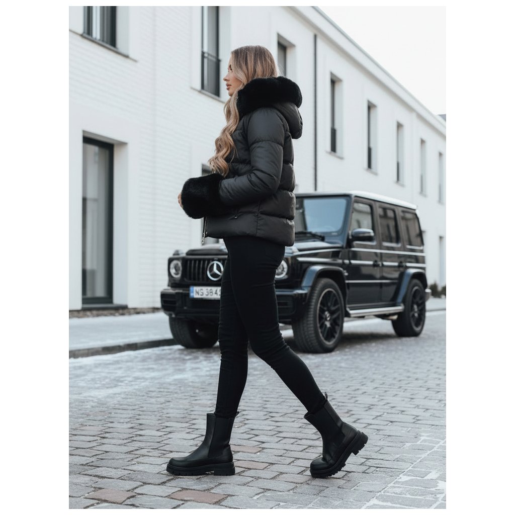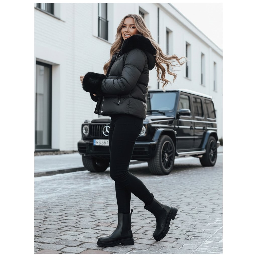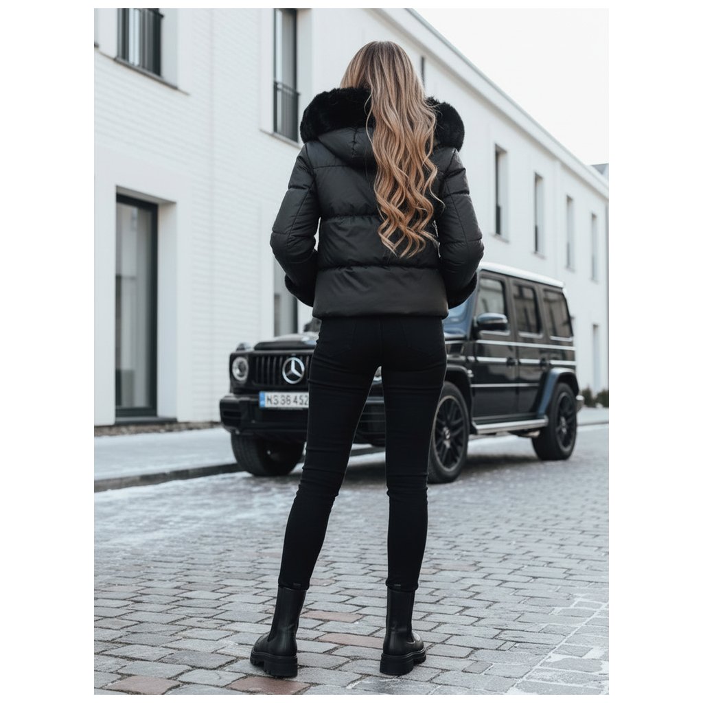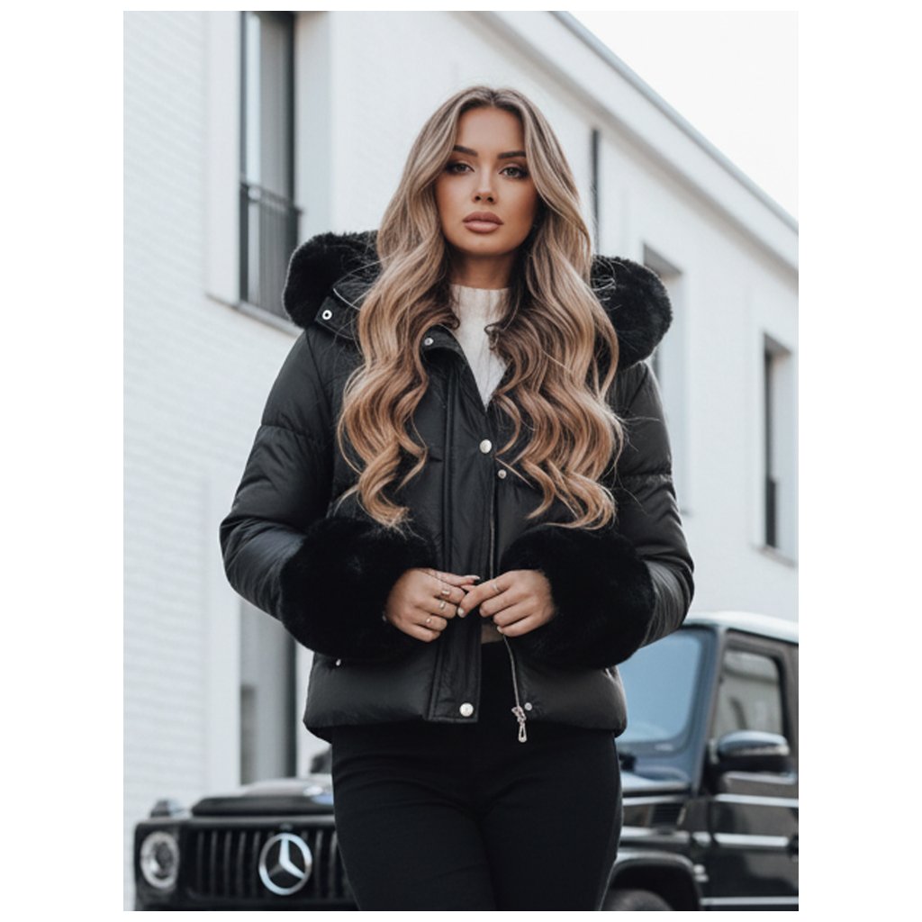 Teplá zimní bunda s měkkým, nadýchaným kožešinovým lemem na kapuci a manžetách. Klasický střih s horizontálním prošíváním, praktickými kapsami a funkčním zapínáním na zip a druk. Ideální pro módní a pohodlný zimní vzhled.