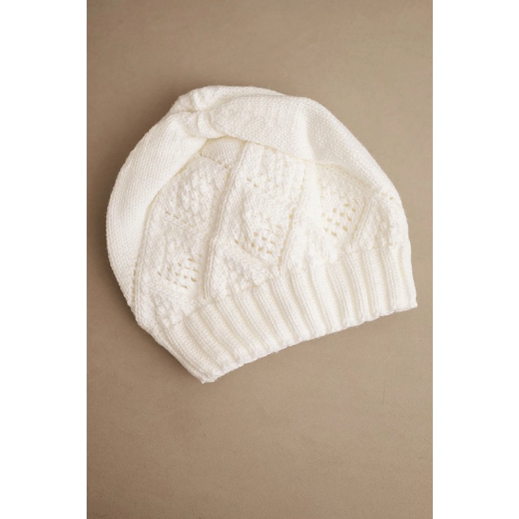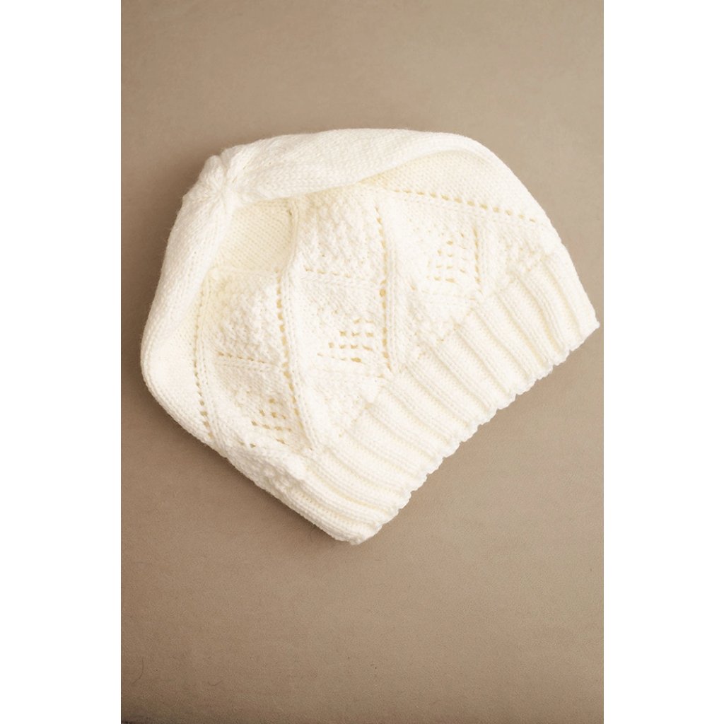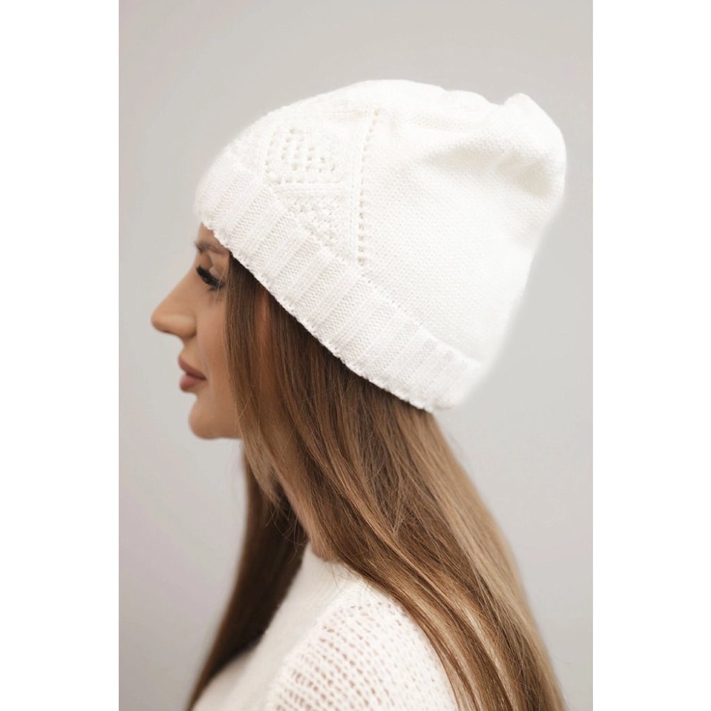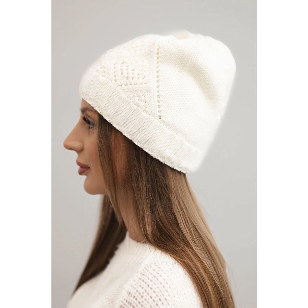 Dámská zimní čepice z vlny a s geometrickým vzorem K479 ecru