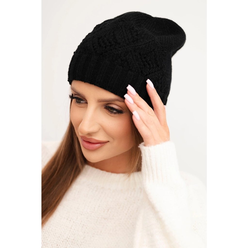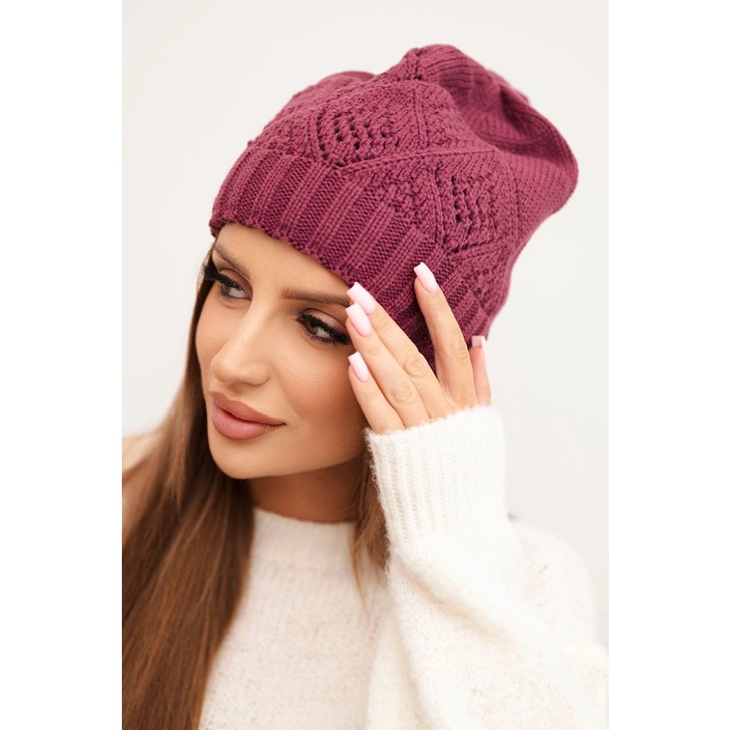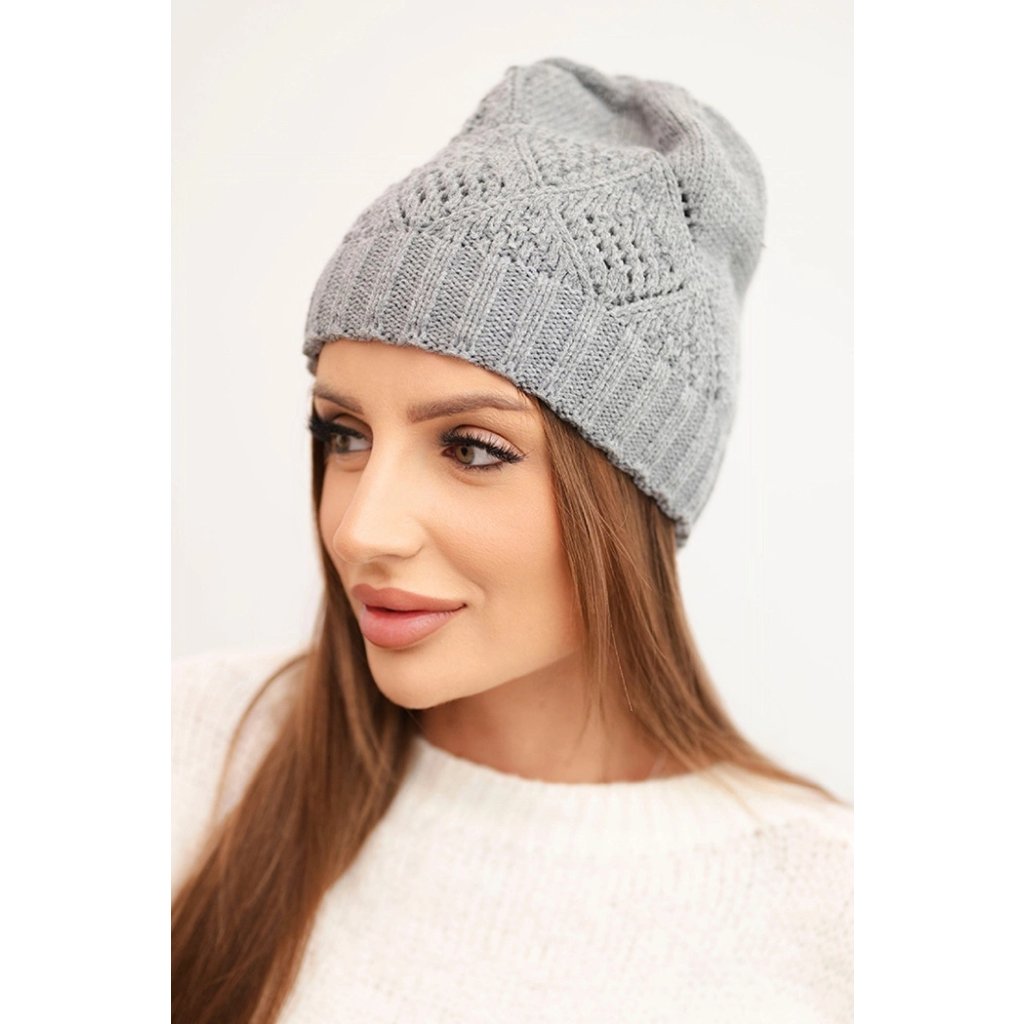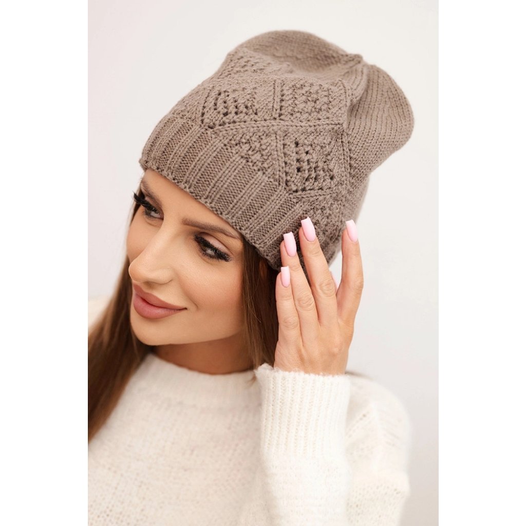 Módní a teplá dámská čepice vyrobená z příjemného na dotek úpletu. Geometrický vzor jí dodává originální charakter, a elastický materiál se přizpůsobuje tvaru hlavy, což zajišťuje komfort v chladných dnech.