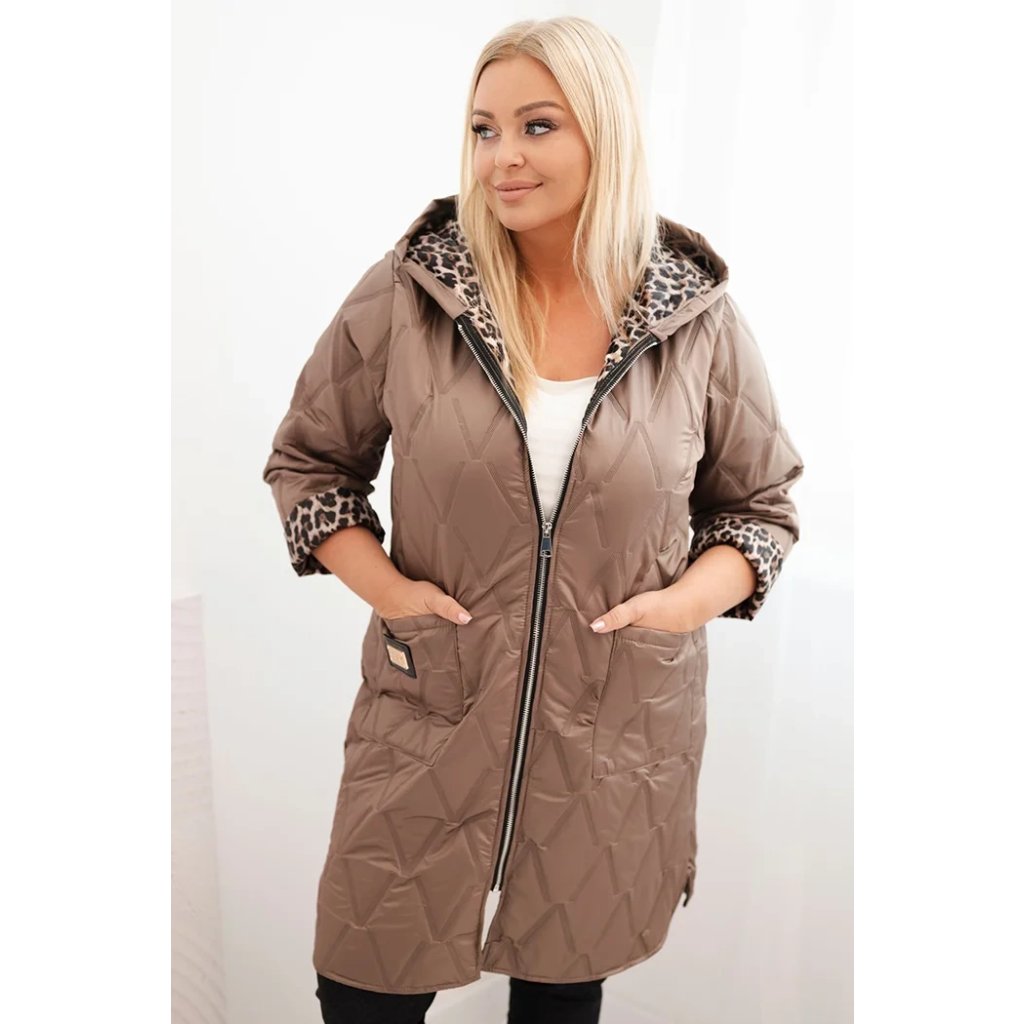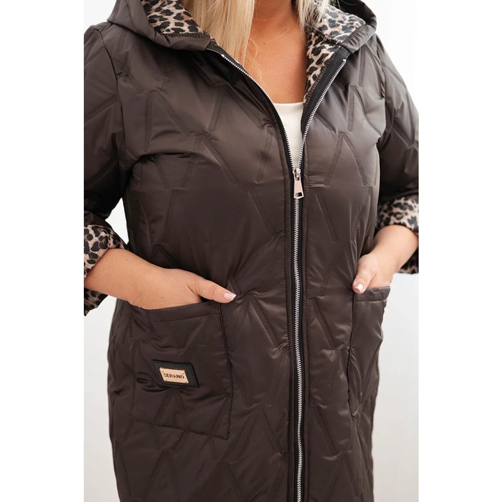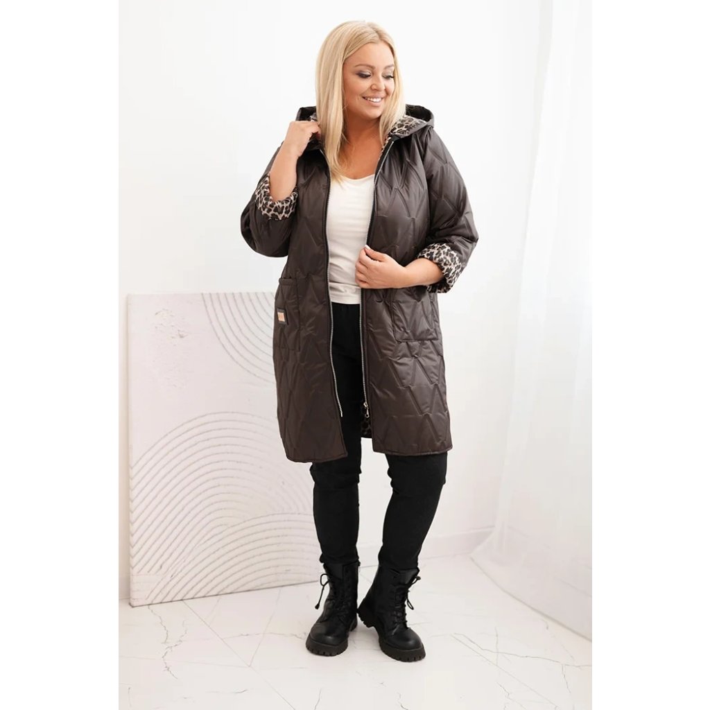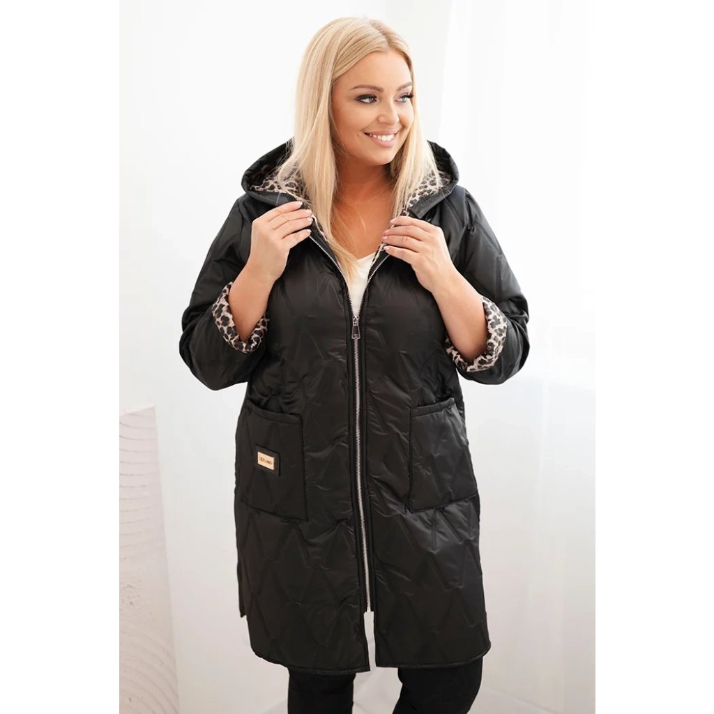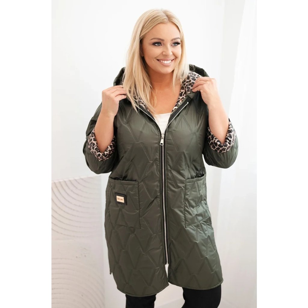 Módní a funkční dámská bunda Plus Size je vynikající volba na chladnější dny. Model se vyznačuje originální podšívkou s leopardím vzorem, která efektivně vypadá po ohrnutí rukávů nebo rozepnutí kapuce. Díky prošívané struktuře bunda vypadá stylově a moderně, a zároveň poskytuje odpovídající teplo.