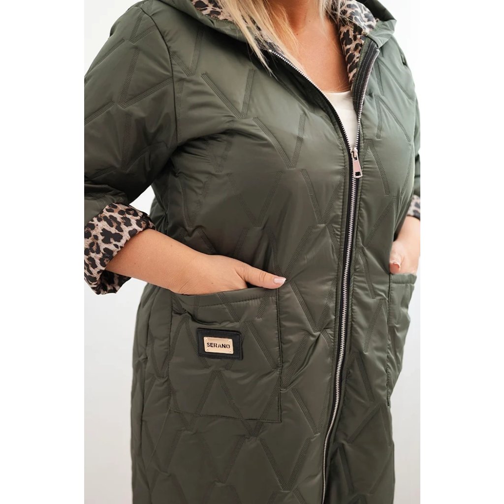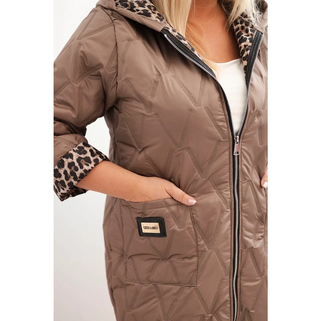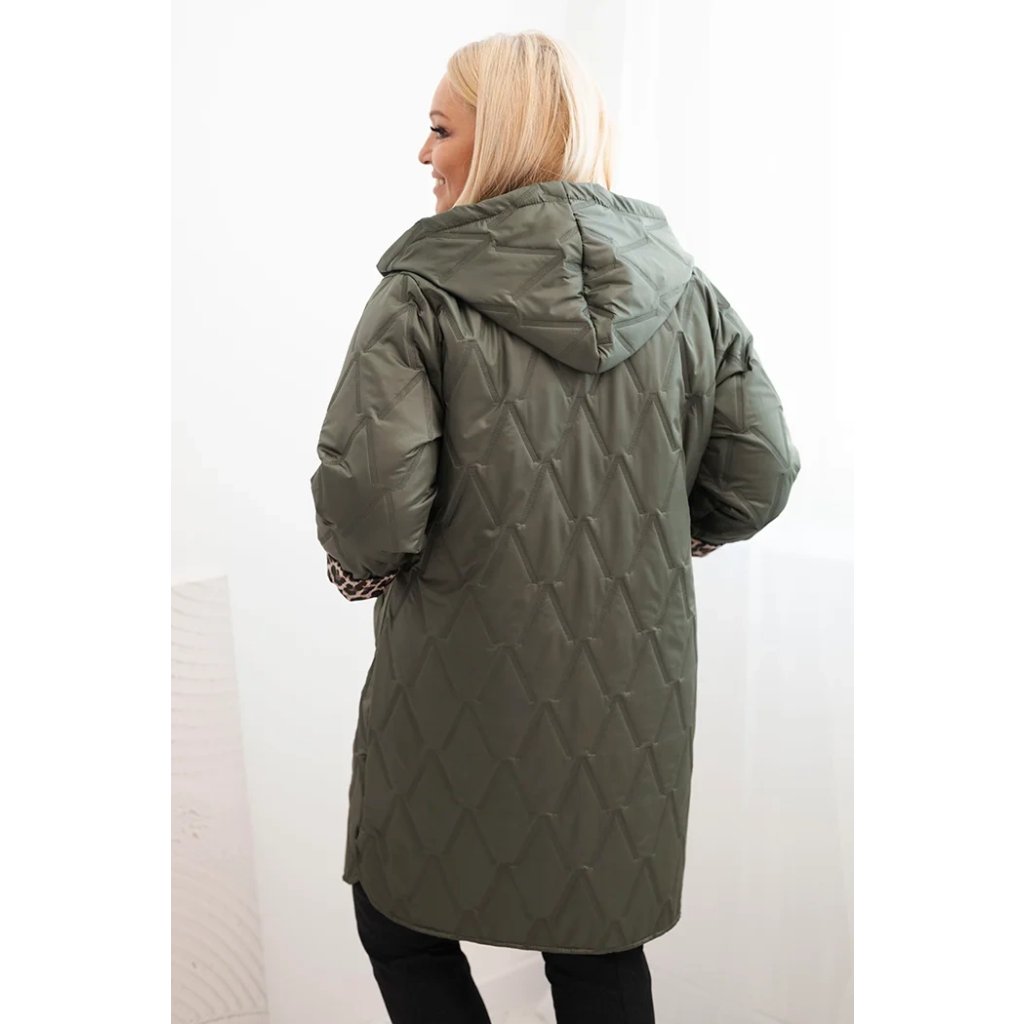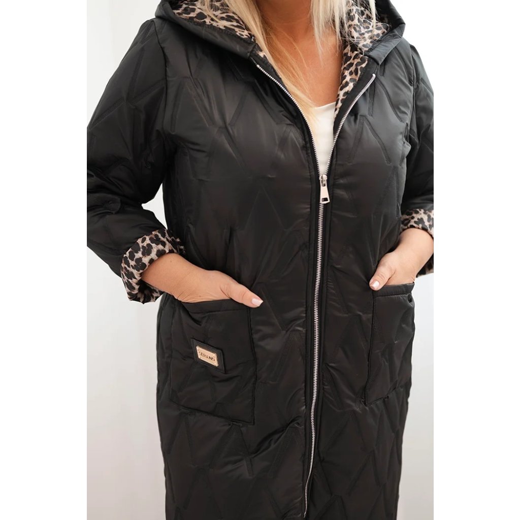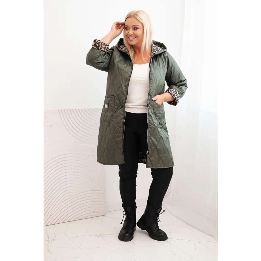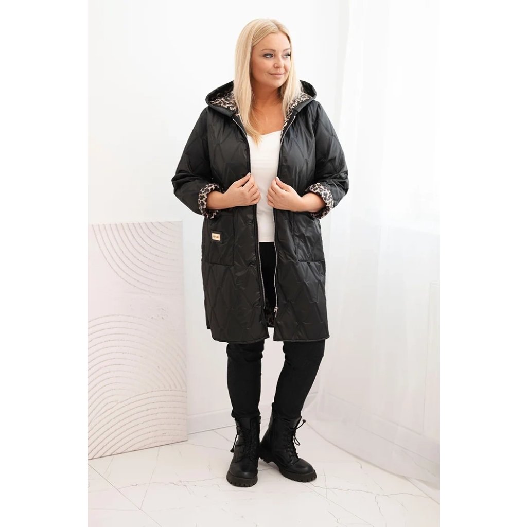 Módní a funkční dámská bunda Plus Size je vynikající volba na chladnější dny. Model se vyznačuje originální podšívkou s leopardím vzorem, která efektivně vypadá po ohrnutí rukávů nebo rozepnutí kapuce. Díky prošívané struktuře bunda vypadá stylově a moderně, a zároveň poskytuje odpovídající teplo.