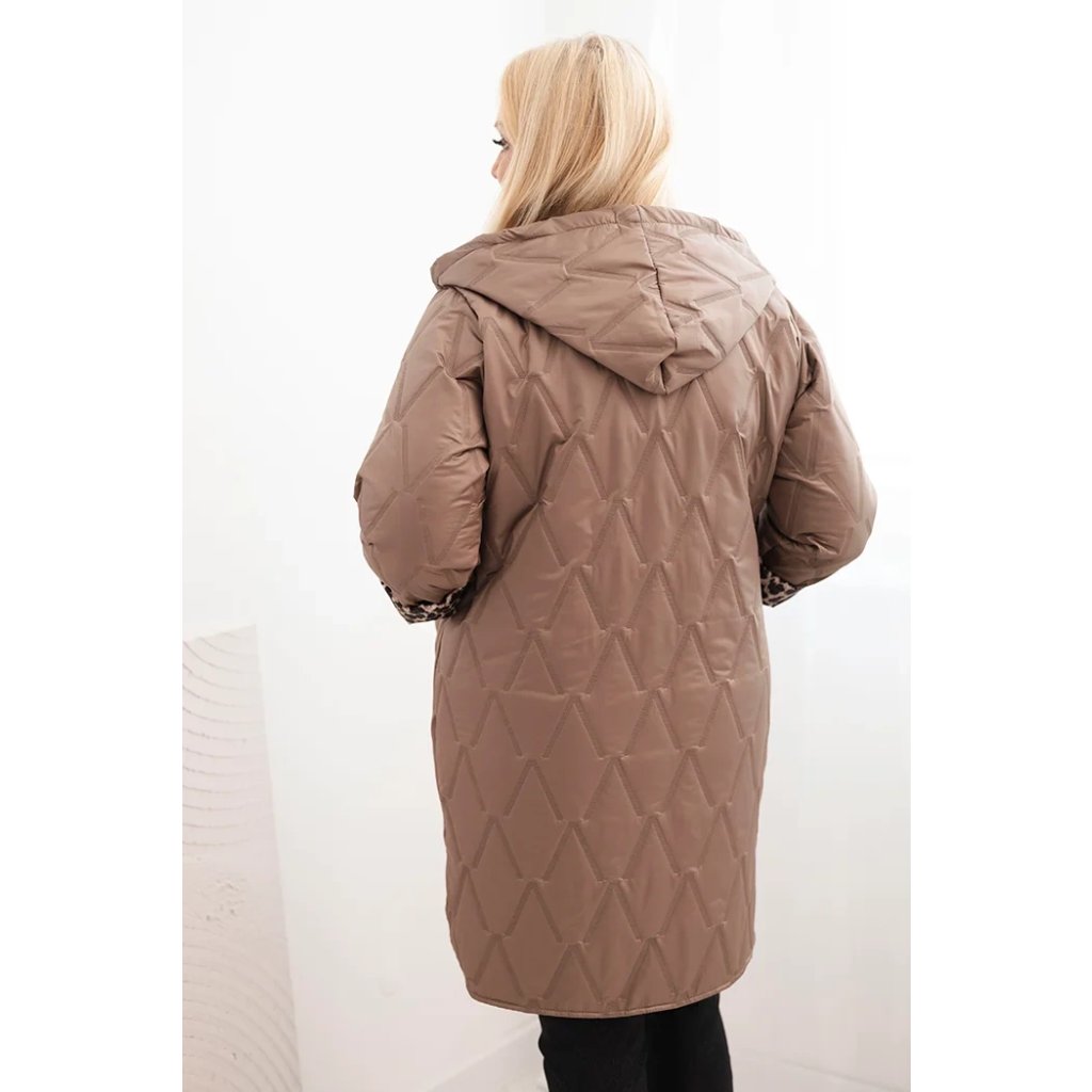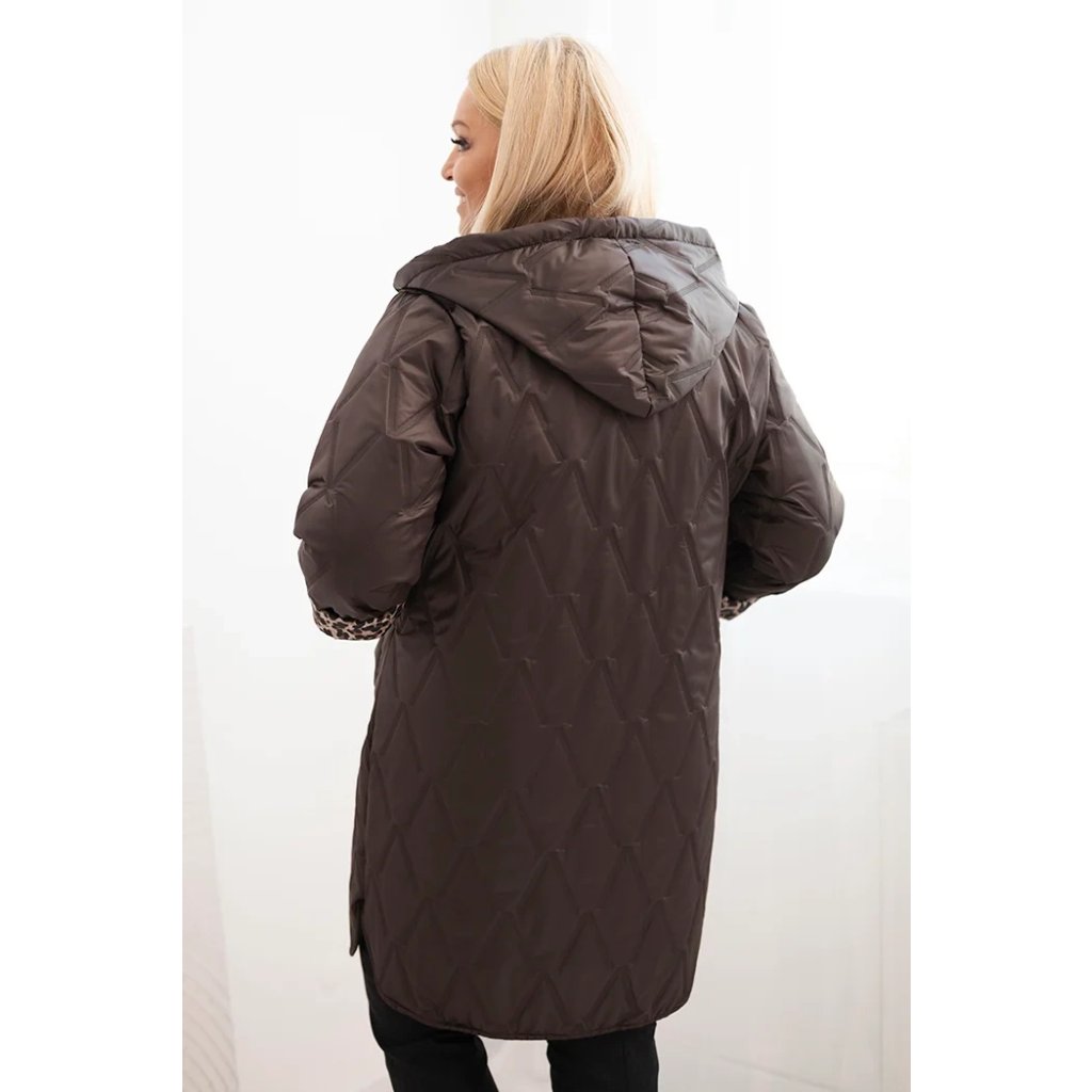 Dámská zimní prošívaná bunda Plus Size s podšívkou v leopardím vzoru a kapucí
