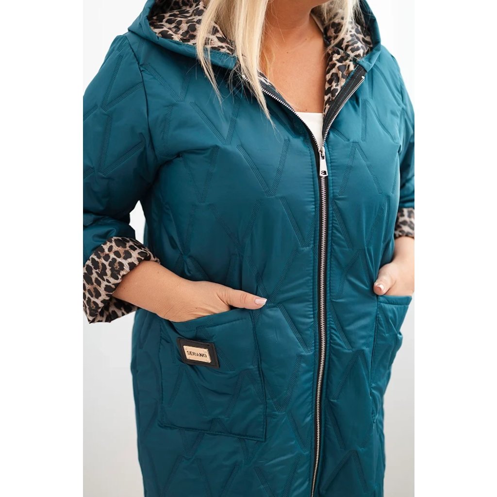 Módní a funkční dámská bunda Plus Size je vynikající volba na chladnější dny. Model se vyznačuje originální podšívkou s leopardím vzorem, která efektivně vypadá po ohrnutí rukávů nebo rozepnutí kapuce. Díky prošívané struktuře bunda vypadá stylově a moderně, a zároveň poskytuje odpovídající teplo.