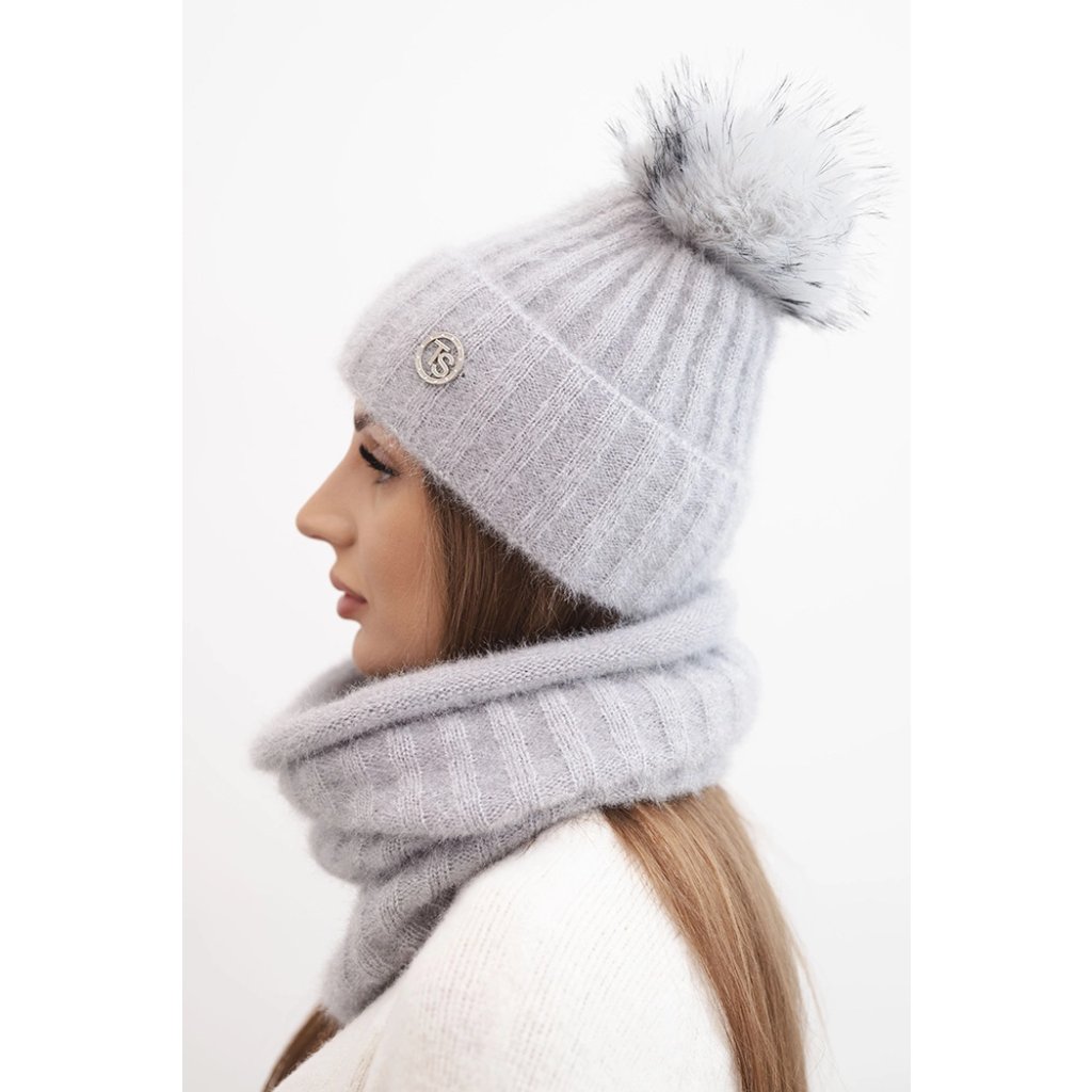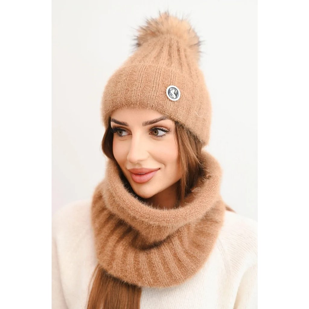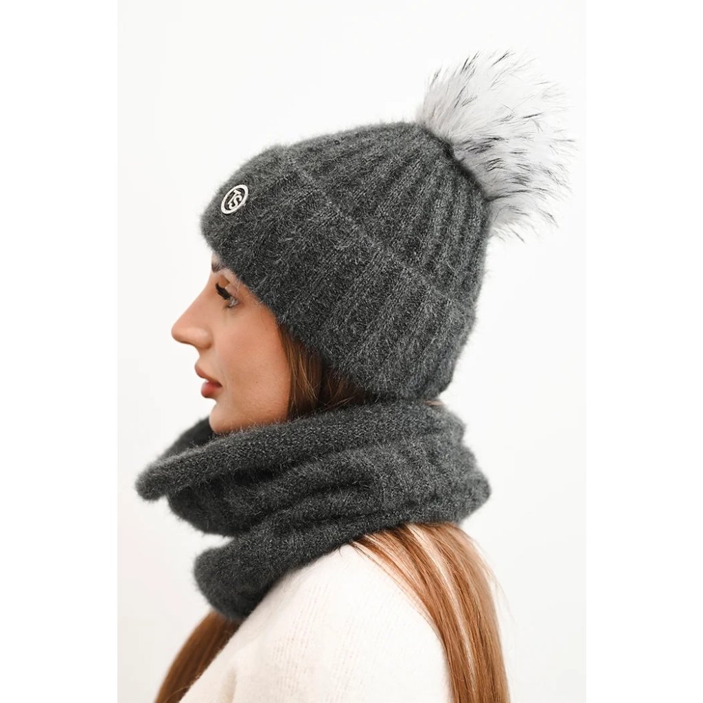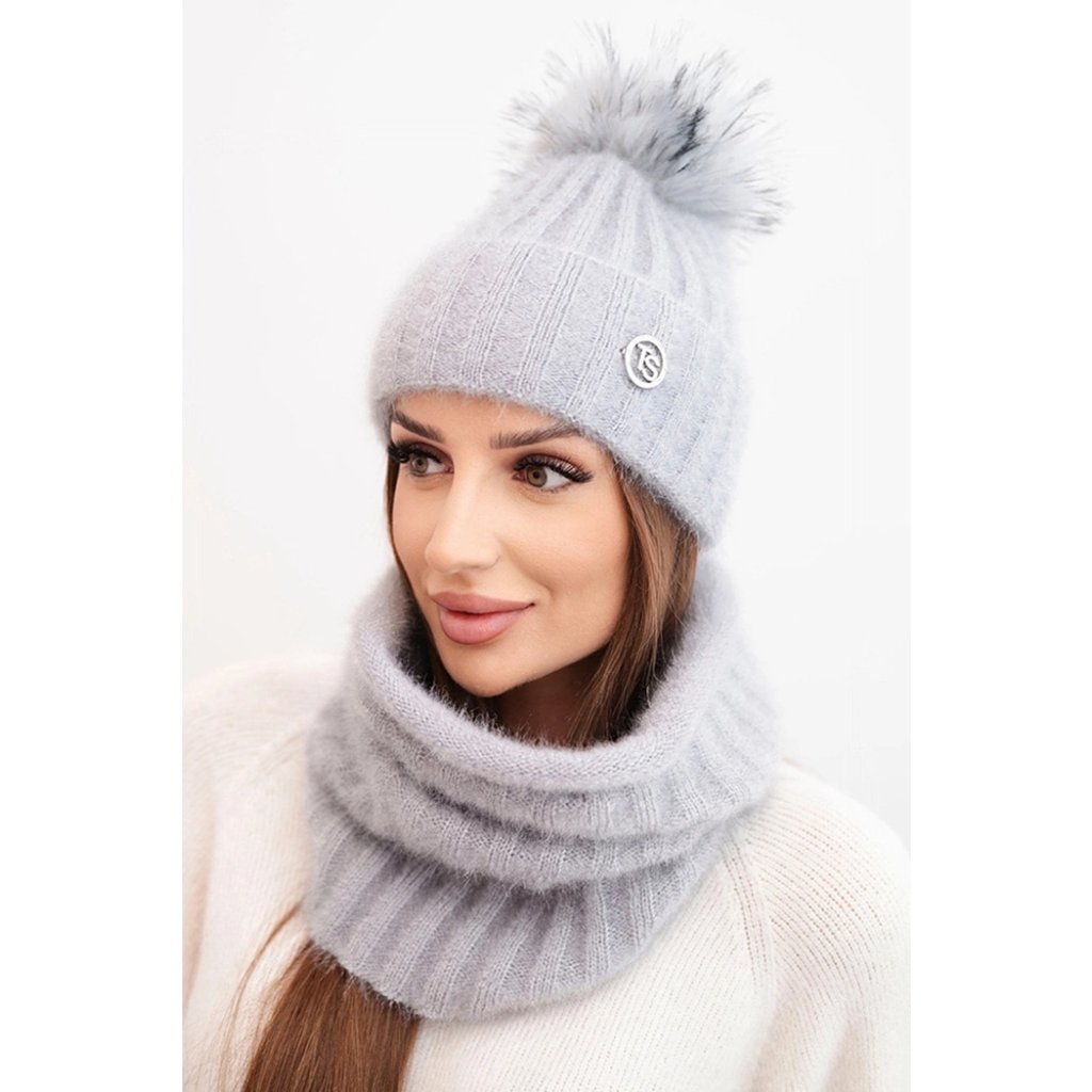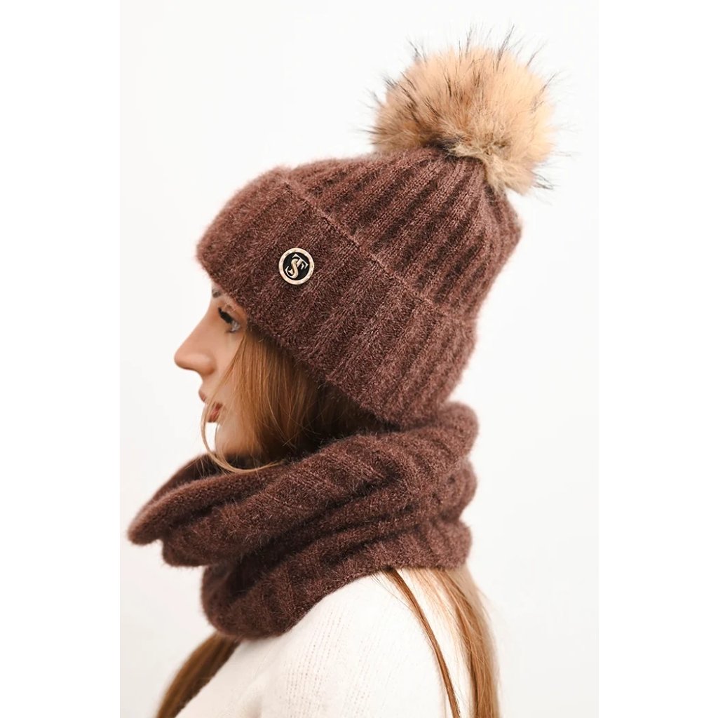 Stylový a praktický zimní set pro ženy – čepice s efektním velkým pomponem a měkký nákrčník. Vyrobeno z příjemného na dotek, nadýchaného úpletu s jemným leskem. Zajišťuje tepelný komfort a módní vzhled v chladných dnech.