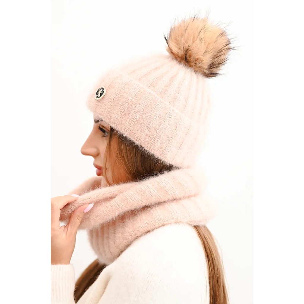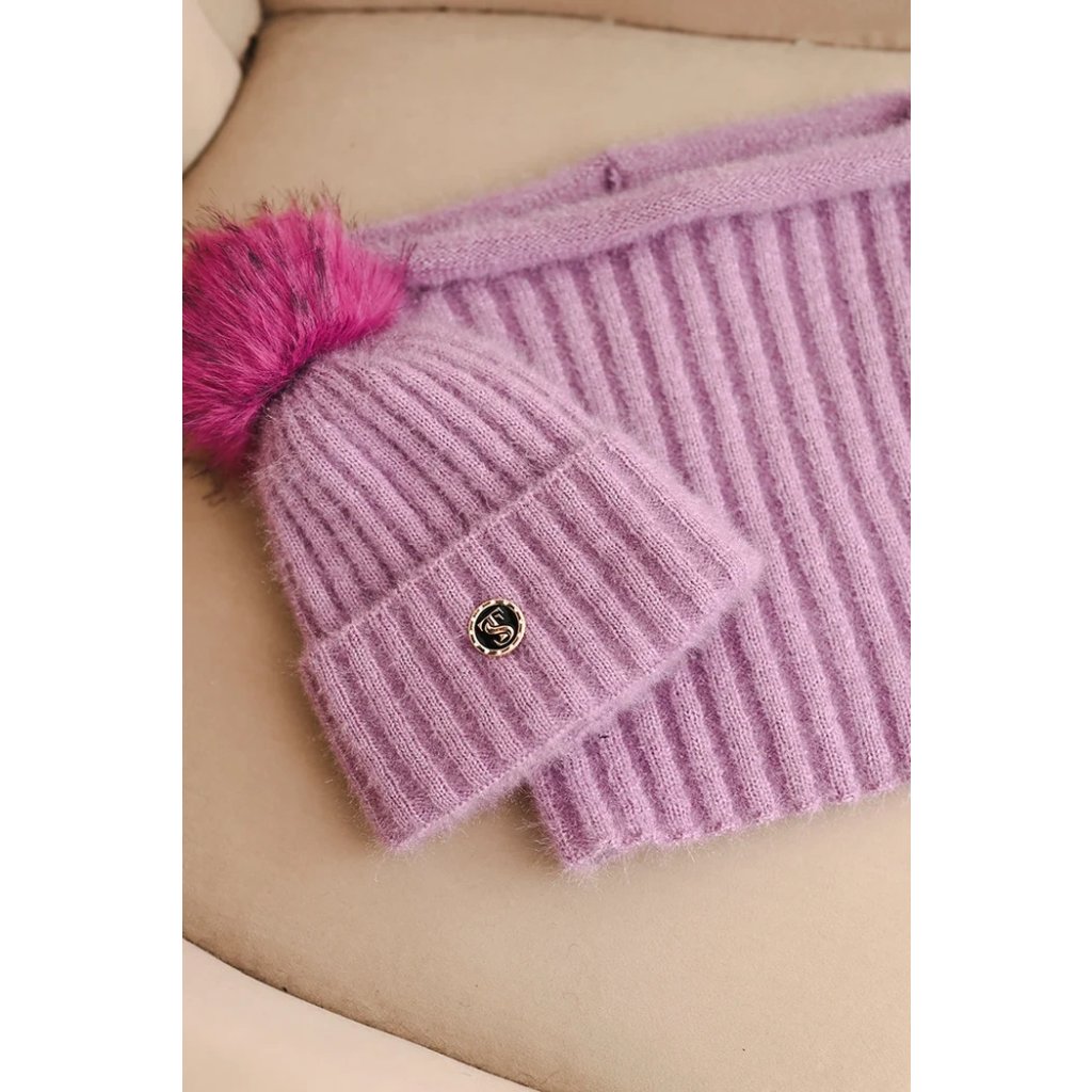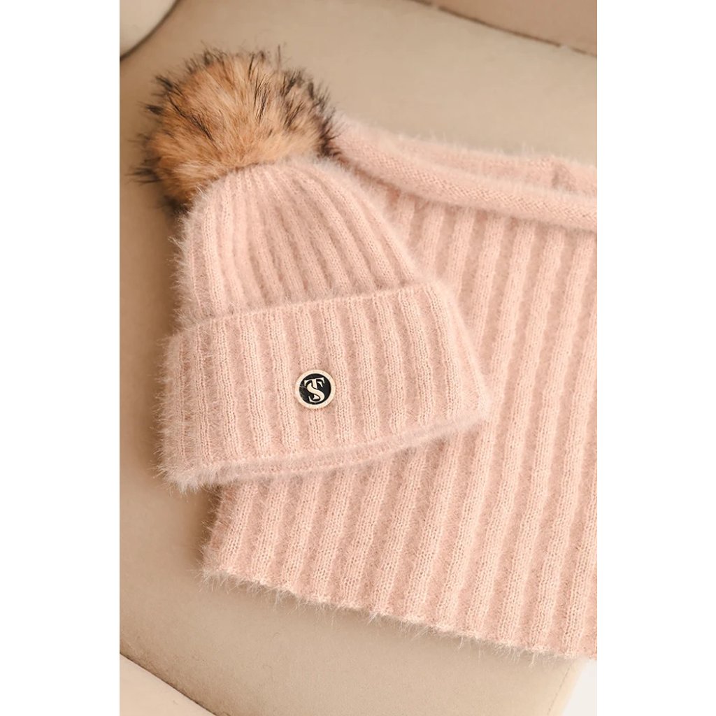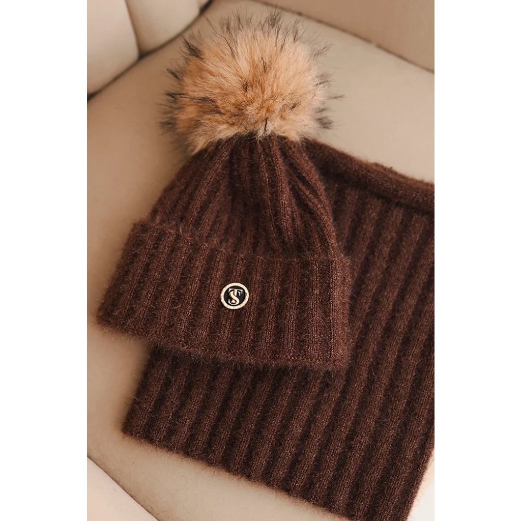Stylový a praktický zimní set pro ženy – čepice s efektním velkým pomponem a měkký nákrčník. Vyrobeno z příjemného na dotek, nadýchaného úpletu s jemným leskem. Zajišťuje tepelný komfort a módní vzhled v chladných dnech.