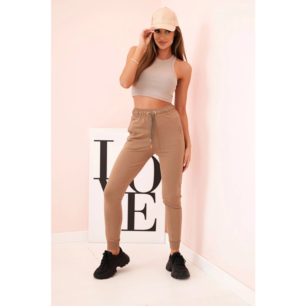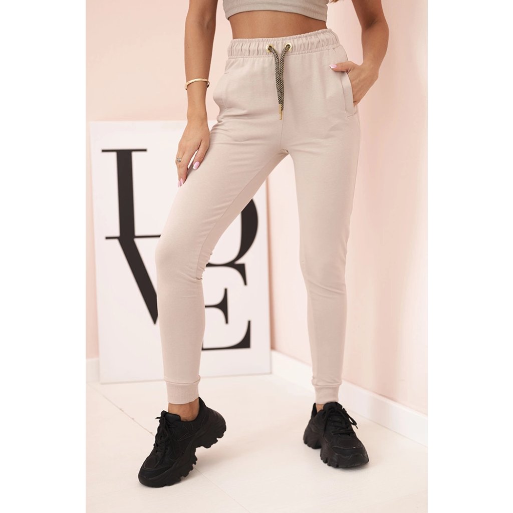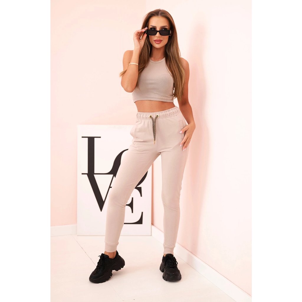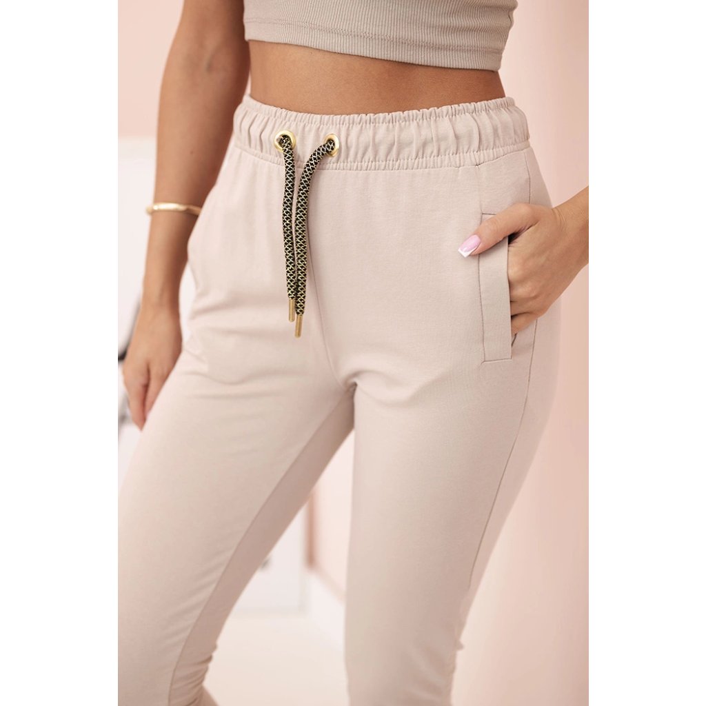 Dámské bavlněné kalhoty s kapsami a řetízkem béžové