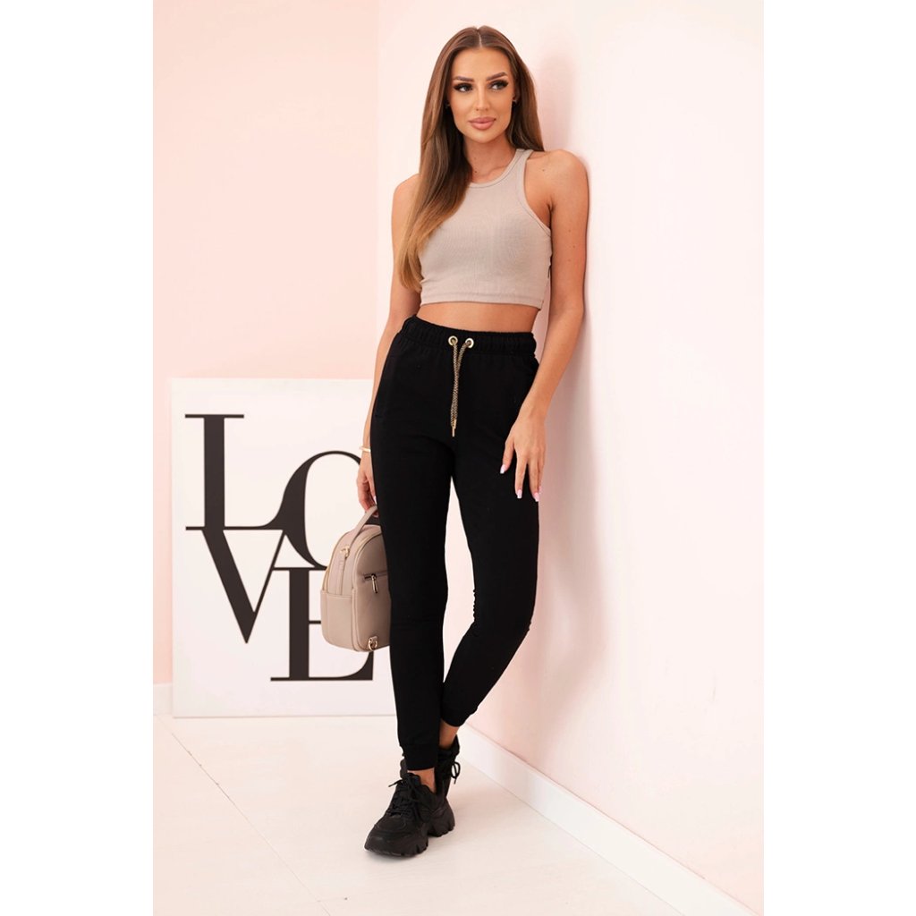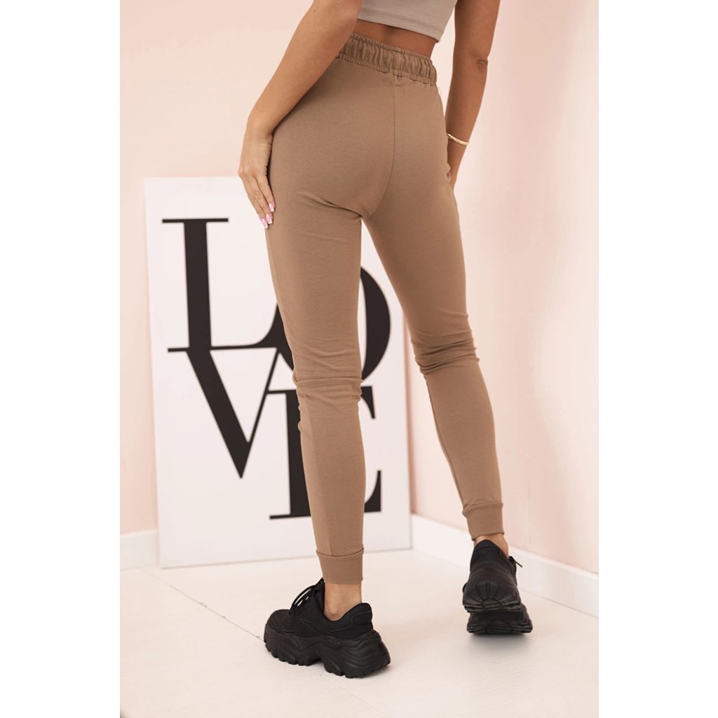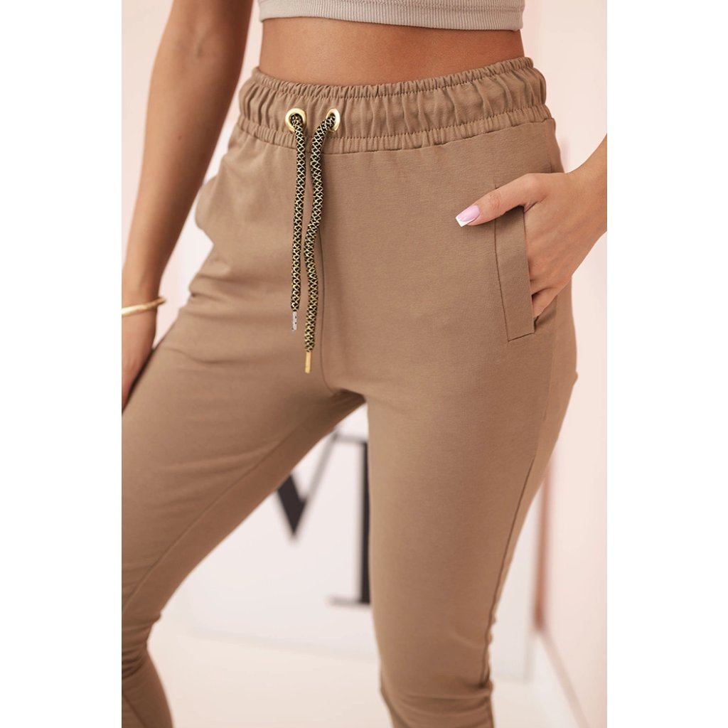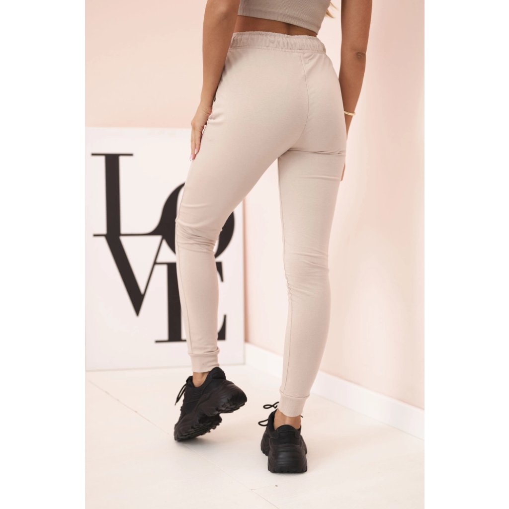 Dámské bavlněné kalhoty s kapsami a řetízkem béžové