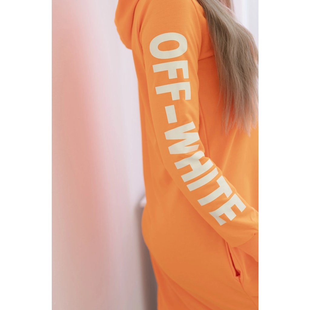 Představujeme vám módní šaty. Šaty s kapucí a nápisem na rukávu off white. Šaty mají kapsy. Šaty jsou vyrobeny z vysoce kvalitního materiálu.