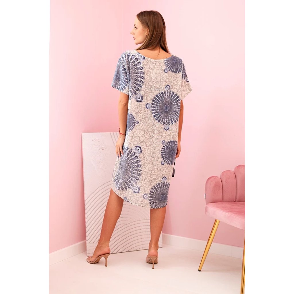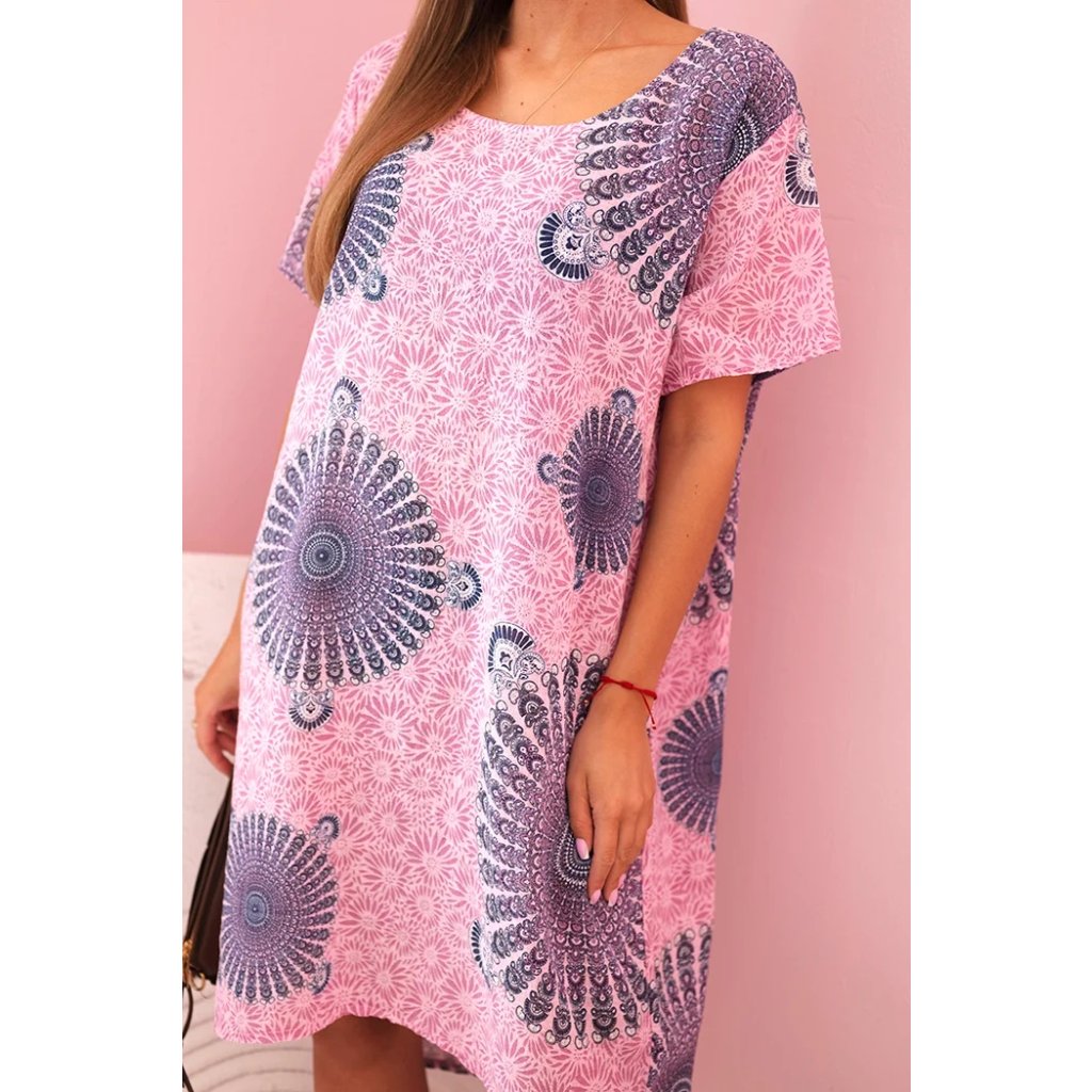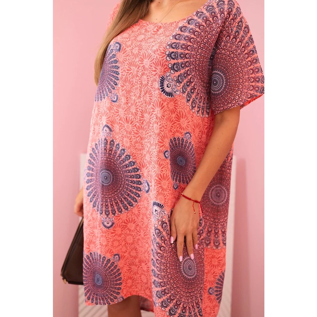 Dámské šaty s krátkým rukávem a efektním orientálním vzorem jsou ideální volbou na letní dny. Jsou ušité ze 100% přírodní bavlny, což zajišťuje výjimečné pohodlí a vynikající prodyšnost. Jejich volný střih krásně padne na postavu a asymetrický spodní lem dodává modelu lehkost a moderní vzhled. Skvělá volba pro každodenní nošení, procházky či letní dovolenou – spojují pohodlí a styl, který upoutá pozornost.