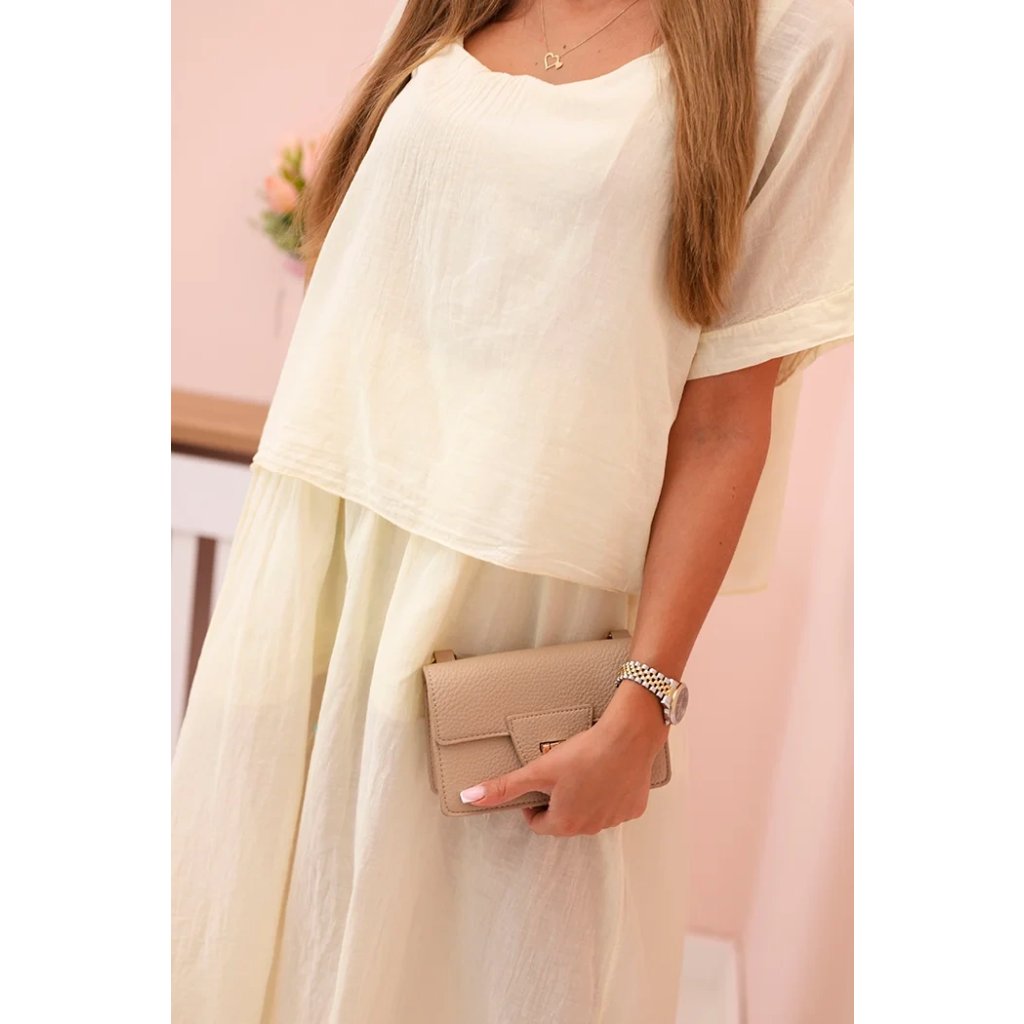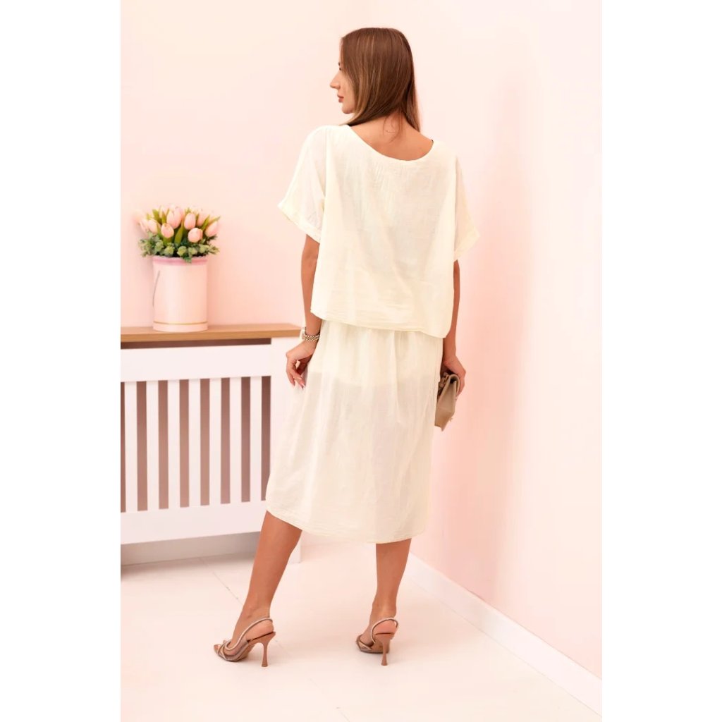 Tyto dámské šaty jsou ideální kombinací pohodlí, komfortu a stylu. Vyrobeny ze 100% přírodní bavlny, okouzlí svou lehkostí a prodyšností, které jsou ideální pro teplejší dny. Jejich oversize střih s krátkým rukávem a jemným kulatým výstřihem zajišťuje plnou volnost pohybu a velmi módní, ležérní vzhled. Volný horní díl jemně padá do pasu a široká sukně vytváří ženskou, uvolněnou siluetu. Je to skvělá volba na každý den – na procházku, nákupy, do práce nebo na dovolenou. Díky univerzálnímu charakteru je snadno zkombinujete jak s teniskami, tak se sandály. Velikost je univerzální a bude vhodná pro dámy velikosti S, M nebo L.