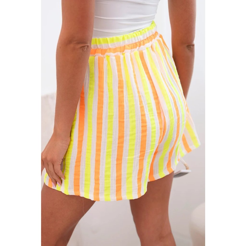 Dámské bavlněné šortky pruhované žlutý neon