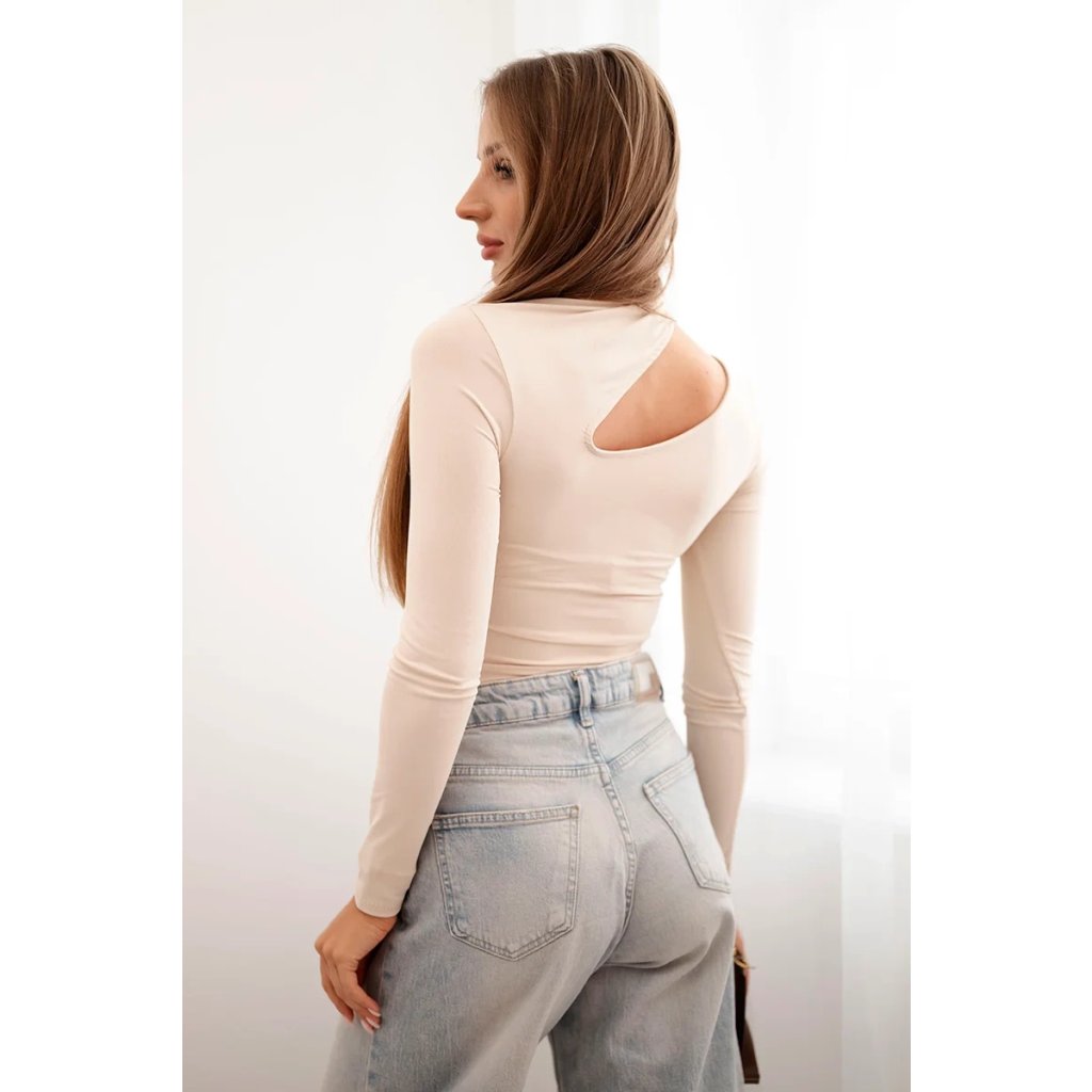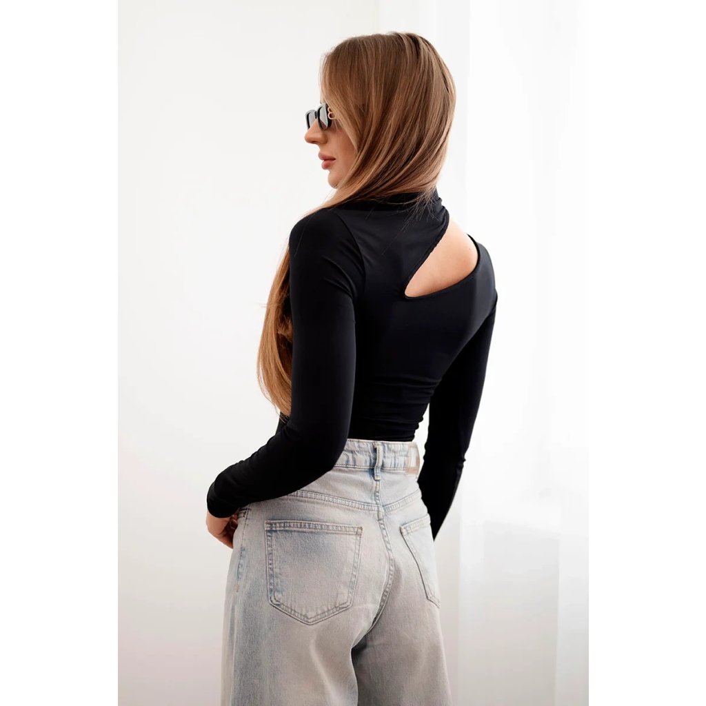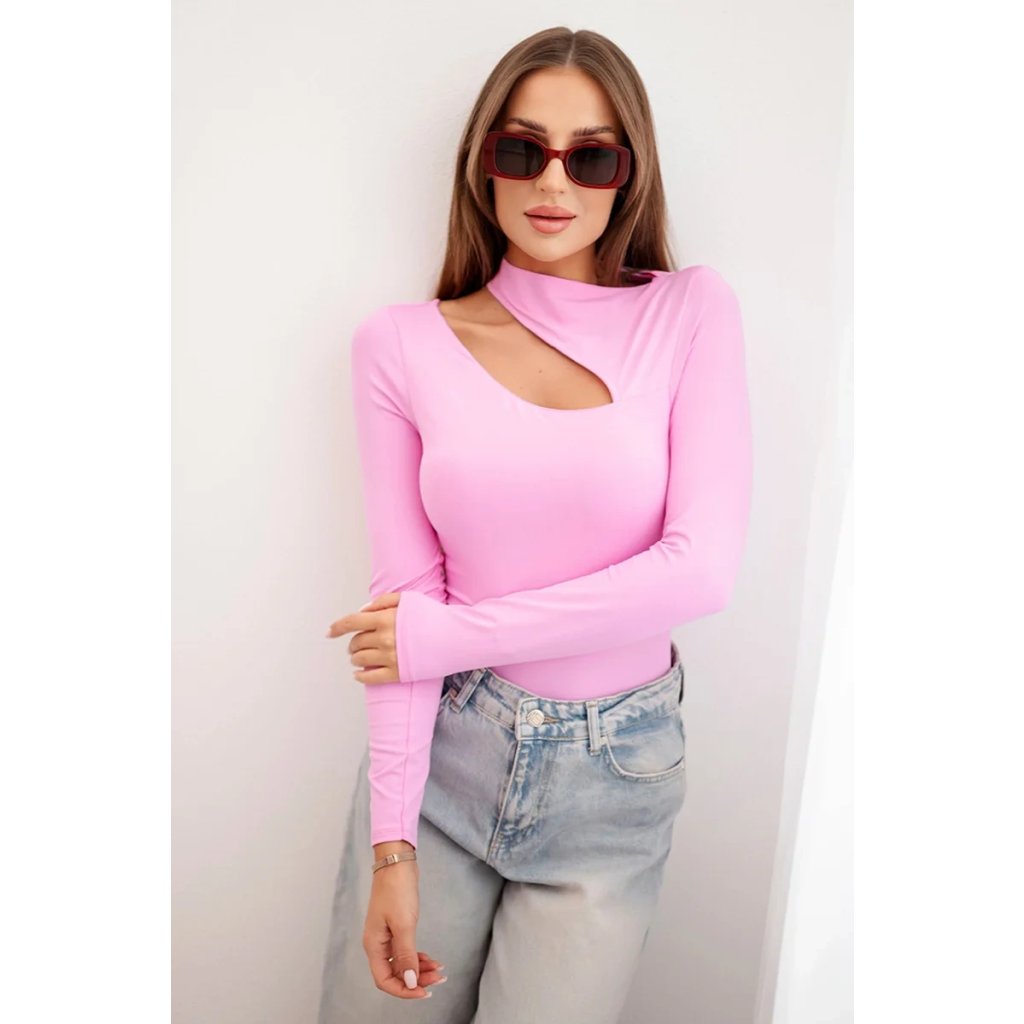 Stylové dámské body s dlouhým rukávem je skvělou volbou pro ženy, které ocení módní a efektní střihy. Model se vyznačuje originálním asymetrickým výstřihem s ozdobným výřezem, který mu dodává moderní vzhled. Vyrobeno z elastického a příjemného materiálu, který dokonale přiléhá k tělu a zvýrazňuje jeho přednosti.