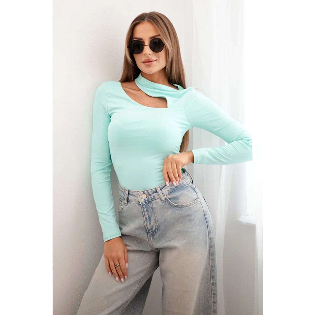 Stylové dámské body s dlouhým rukávem je skvělou volbou pro ženy, které ocení módní a efektní střihy. Model se vyznačuje originálním asymetrickým výstřihem s ozdobným výřezem, který mu dodává moderní vzhled. Vyrobeno z elastického a příjemného materiálu, který dokonale přiléhá k tělu a zvýrazňuje jeho přednosti.