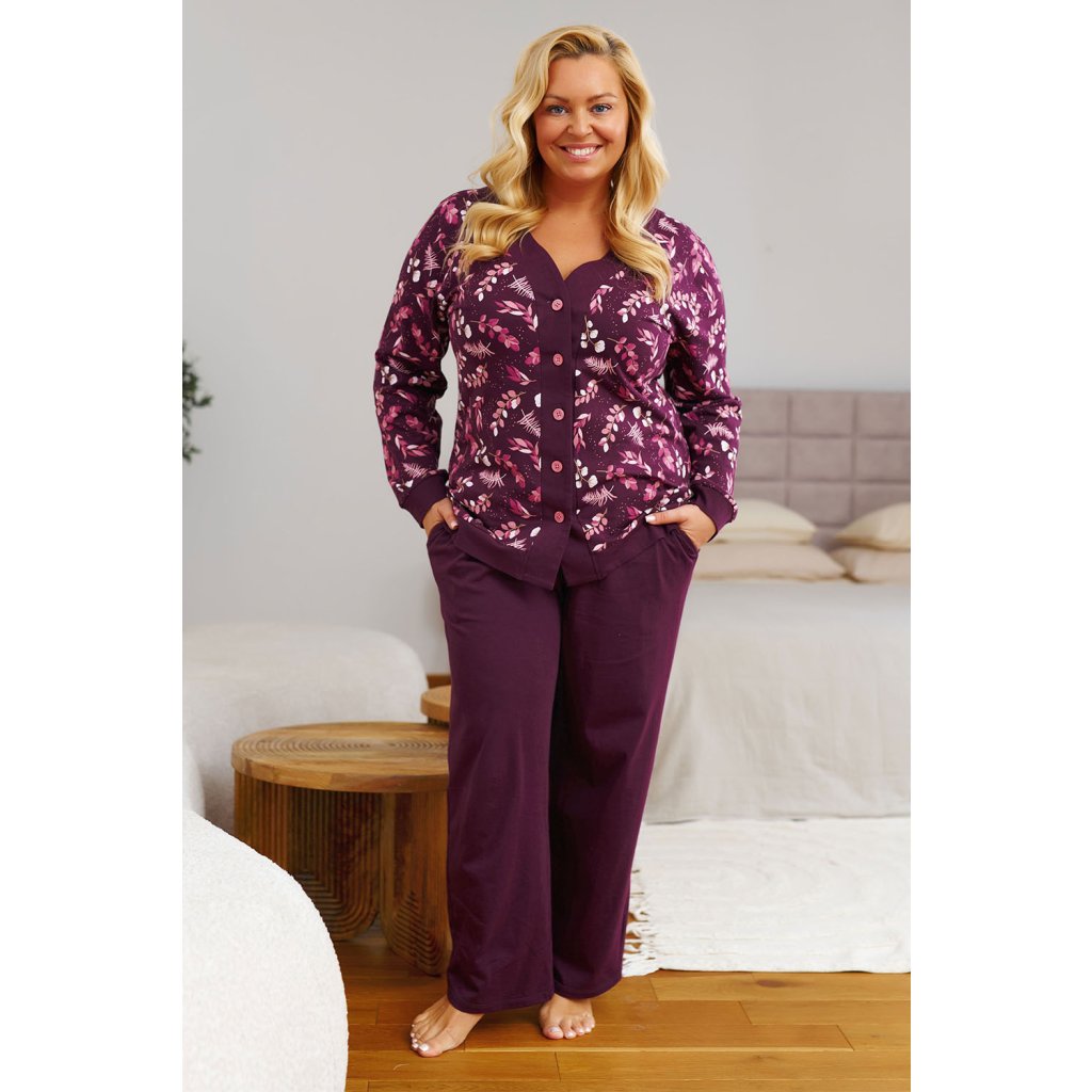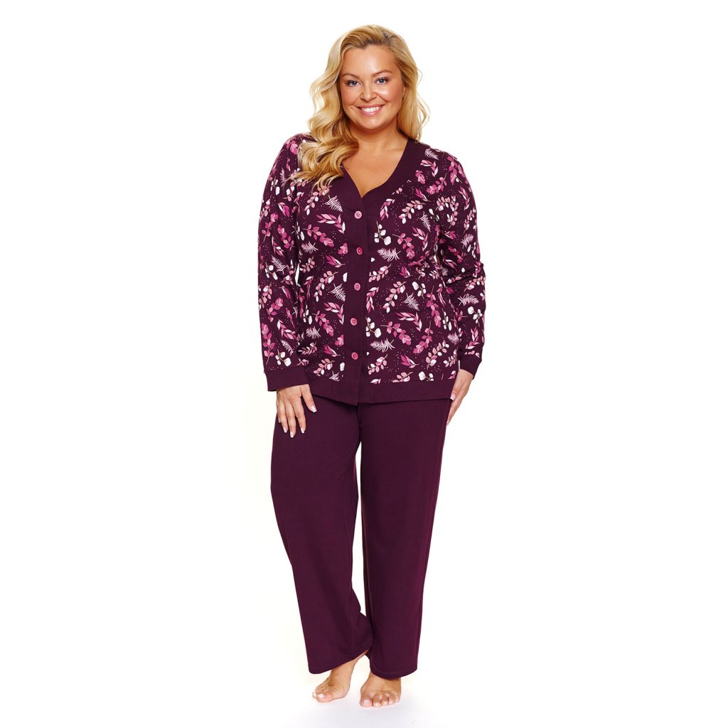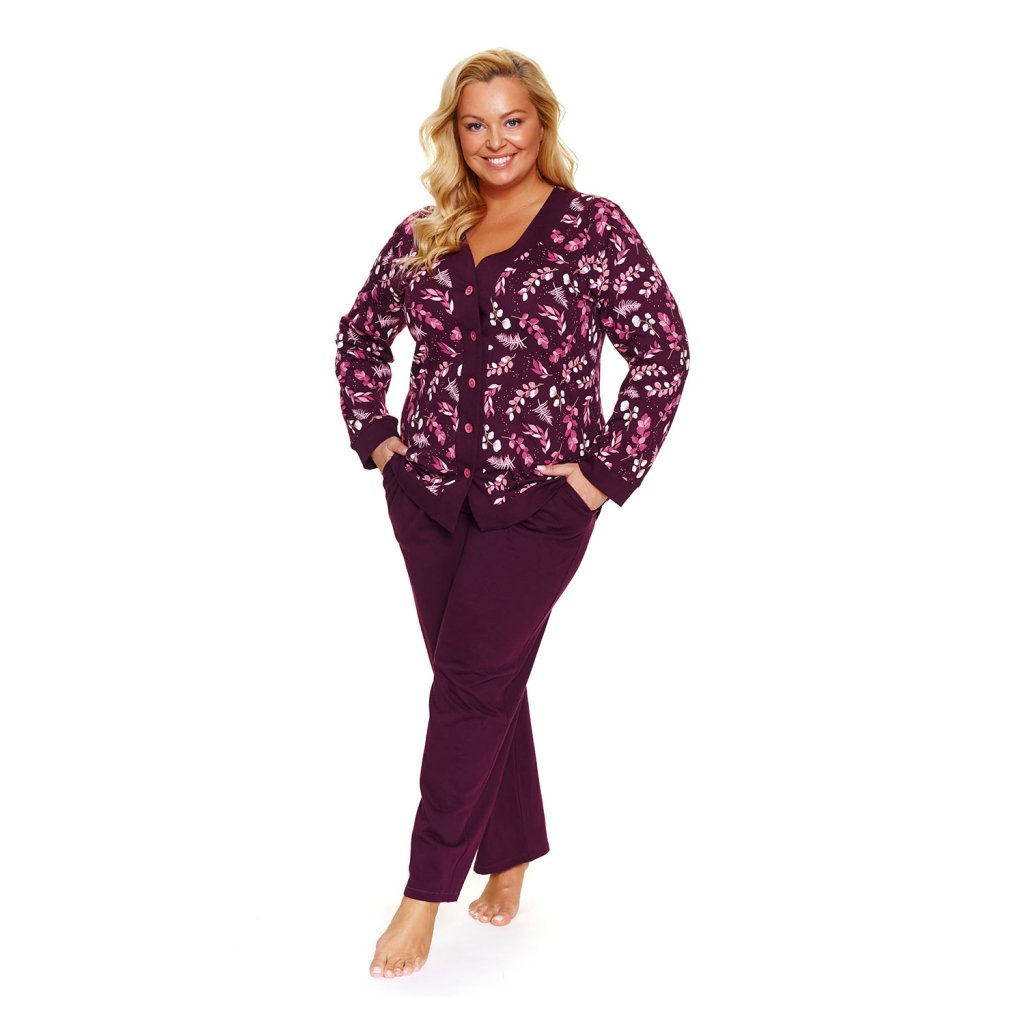 Doctor Nap 7320 – Pyžamový set pro větší velikosti.Dvoudílný pyžamový set Doctor Nap 7320 nabízí pohodlí ve dne i v noci. Je vyroben ze 100% bavlny, jemně splývá a umožňuje pokožce dýchat. Volný střih pro větší velikosti umožňuje volnost pohybu, zatímco elastický pas nabízí pohodlné nošení. Halenka má jednoduchý a pohodlný střih s kulatým výstřihem, který pohodlně padne a nedráždí. Kalhoty po celé délce mají praktické kapsy, ideální jak pro doma, tak pro cestování. Hladký a měkký materiál je ideální jak pro spaní, tak pro lenošné ráno. Celkový design je promyšlený a nekomplikovaný, takže se snadno začlení do vaší rutiny. Tento model kombinuje vysoce kvalitní řemeslné zpracování s funkčními detaily a pohodlným nošením.