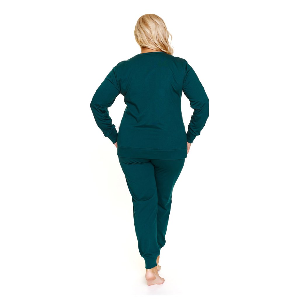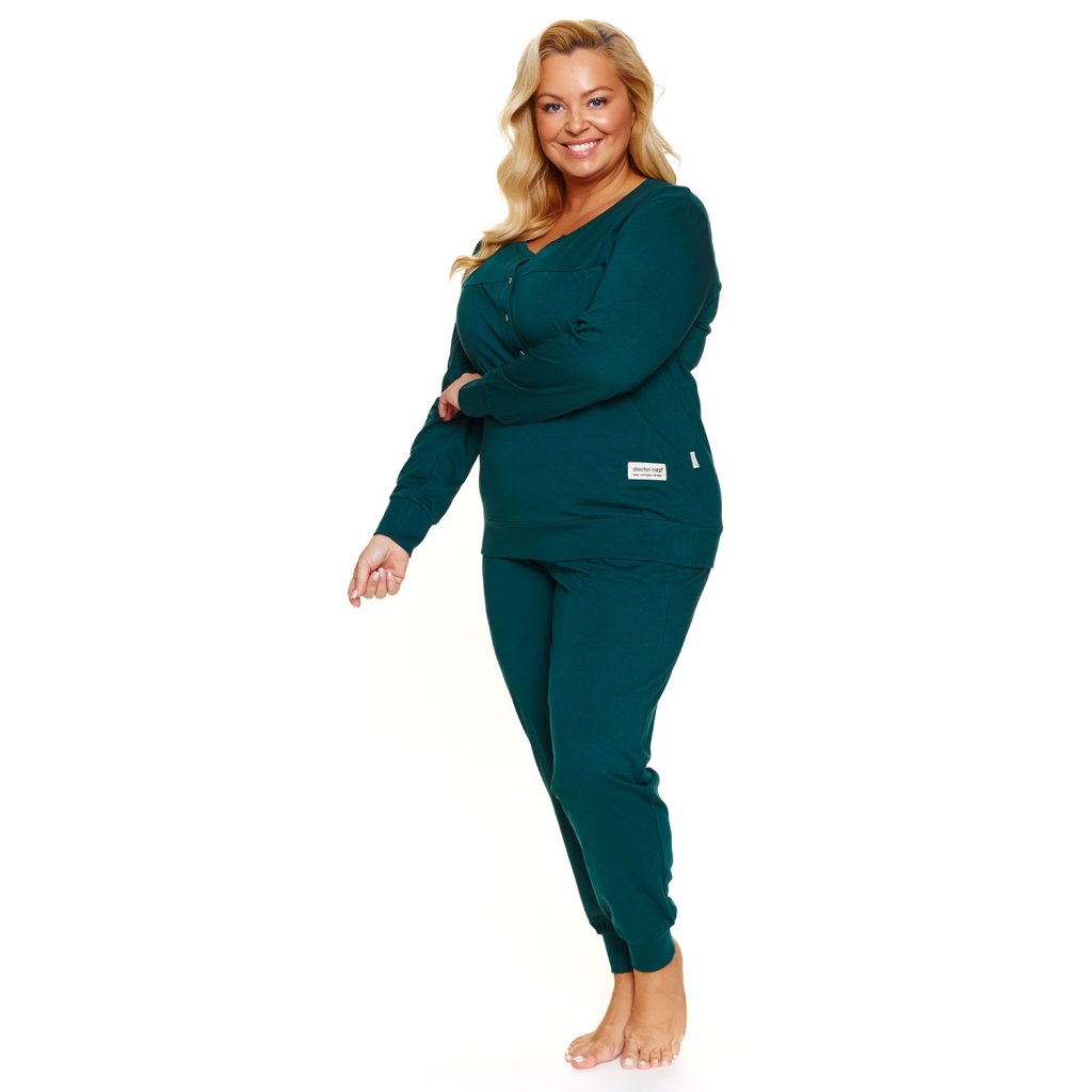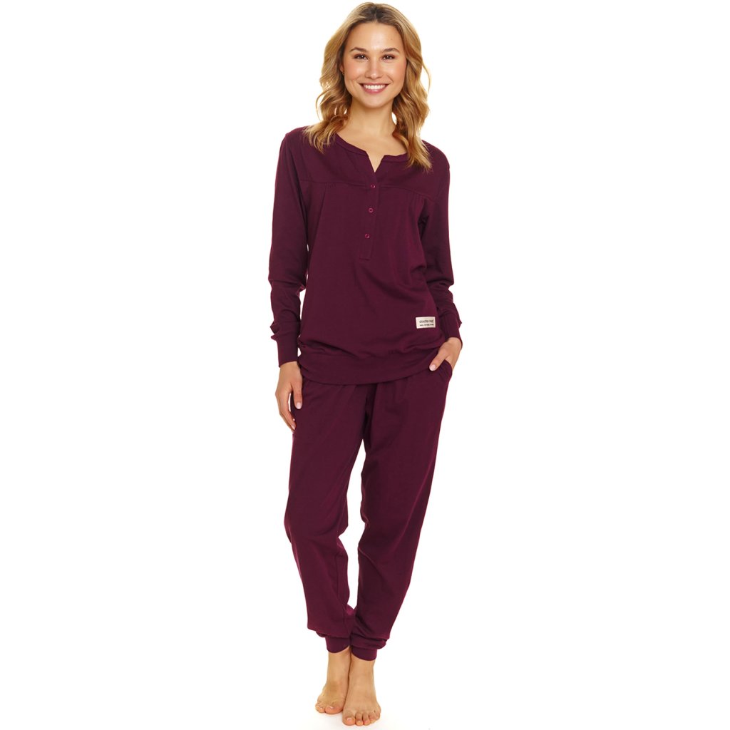 Dlouhý top. Kulatý výstřih s rozparkem. Zapínání na druk vpředu. Dlouhé rukávy. Dlouhé nohavice. Široký, pohodlný elastický pas. Praktické kapsy. Lemy topu a nohavic jsou zakončeny žebrovanými manžetami. Vysoce kvalitní bavlna. Ideální pro domácí nošení. Materiál: 100% bavlna.
