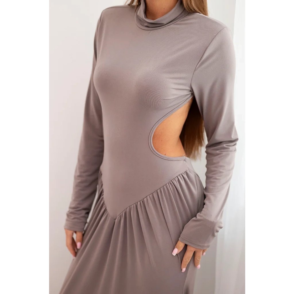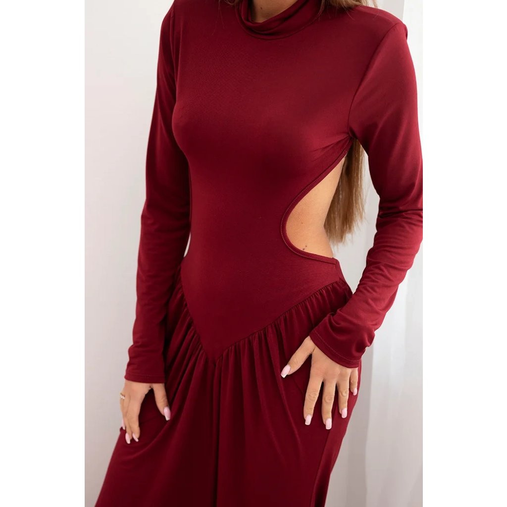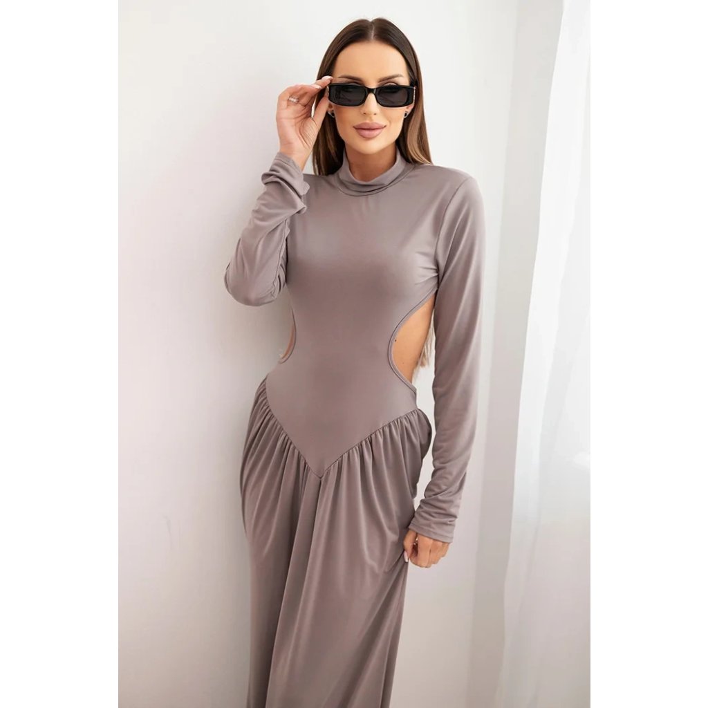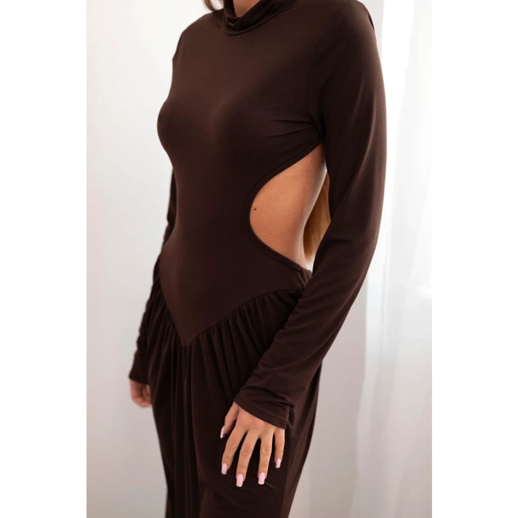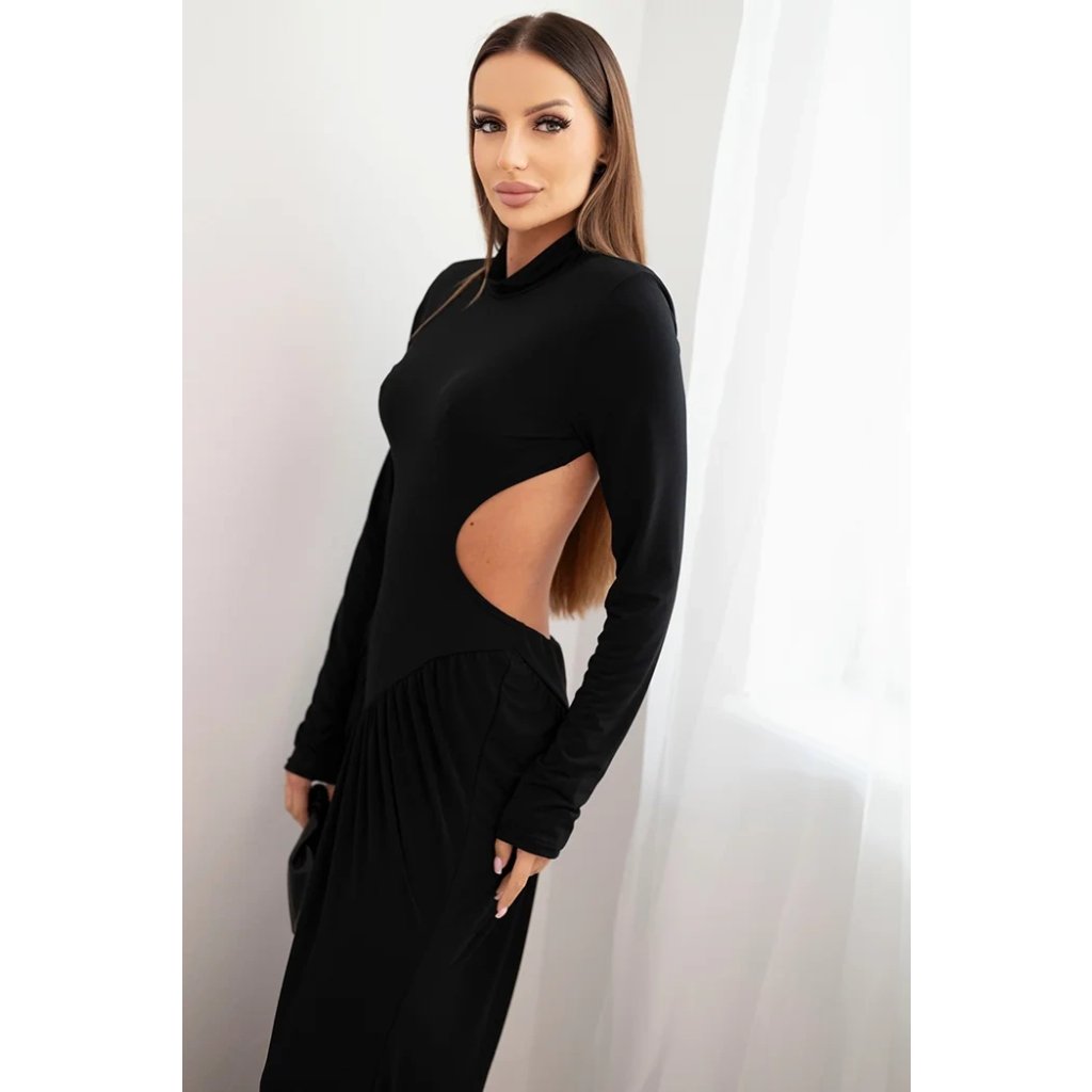 Smyslné dámské maxi šaty s rolákem a odhalenými zády jsou dokonalou volbou na výjimečné příležitosti. Vyrobeny z elastického materiálu s příměsí viskózy, dokonale se přizpůsobují postavě a zdůrazňují ženské tvary. Dlouhý rukáv a klasický přední díl kontrastují s efektním, hluboce vykrojeným zadním dílem, který dodává stylizaci charakter.