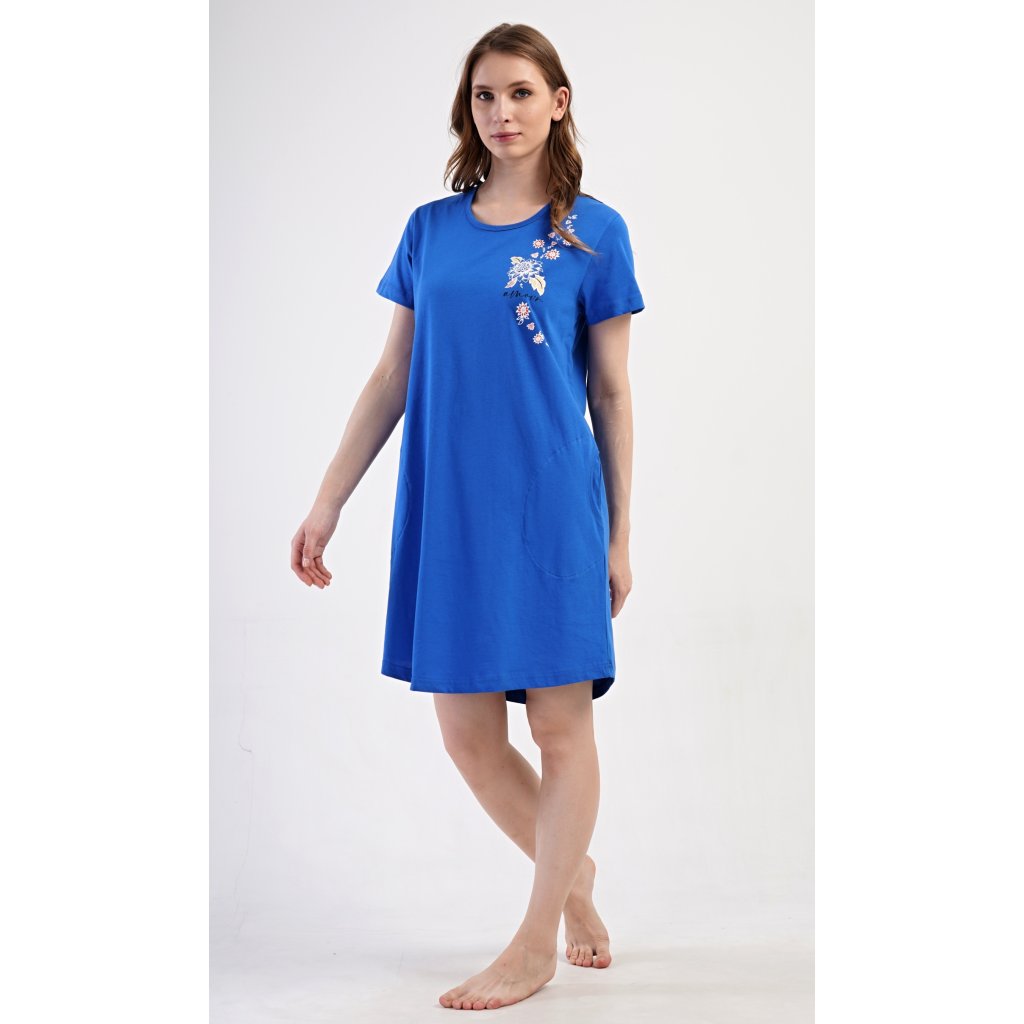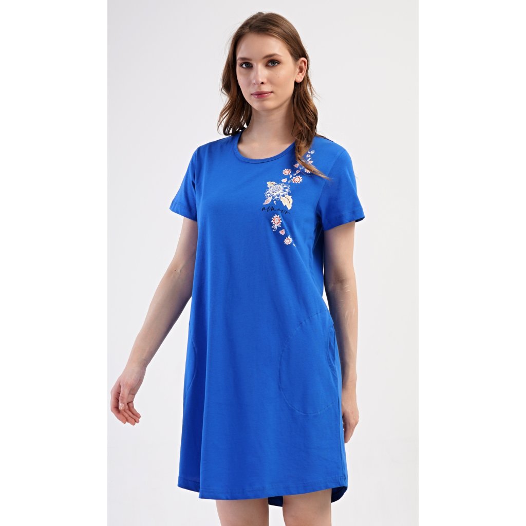 Dámské domácí šaty s krátkým rukávem Květy