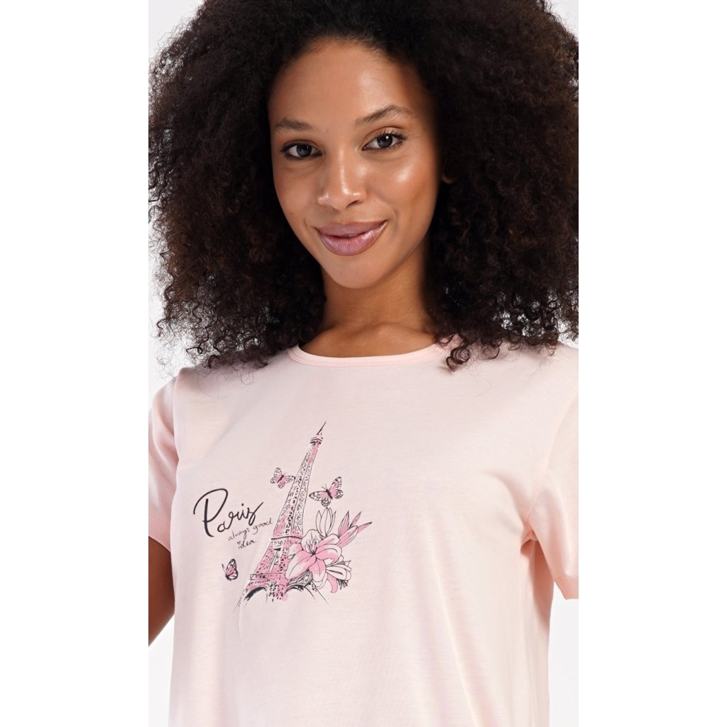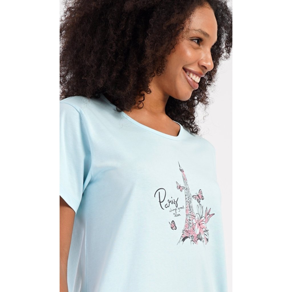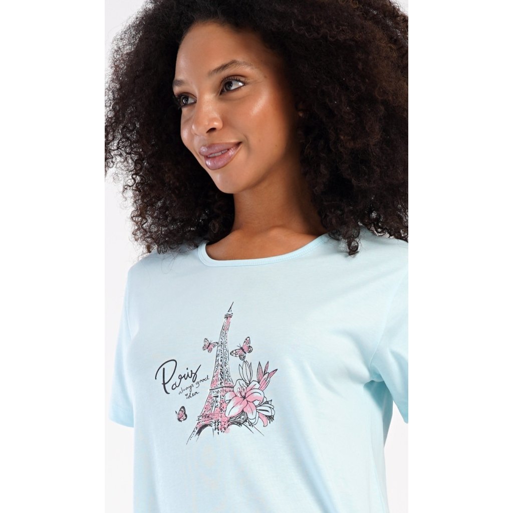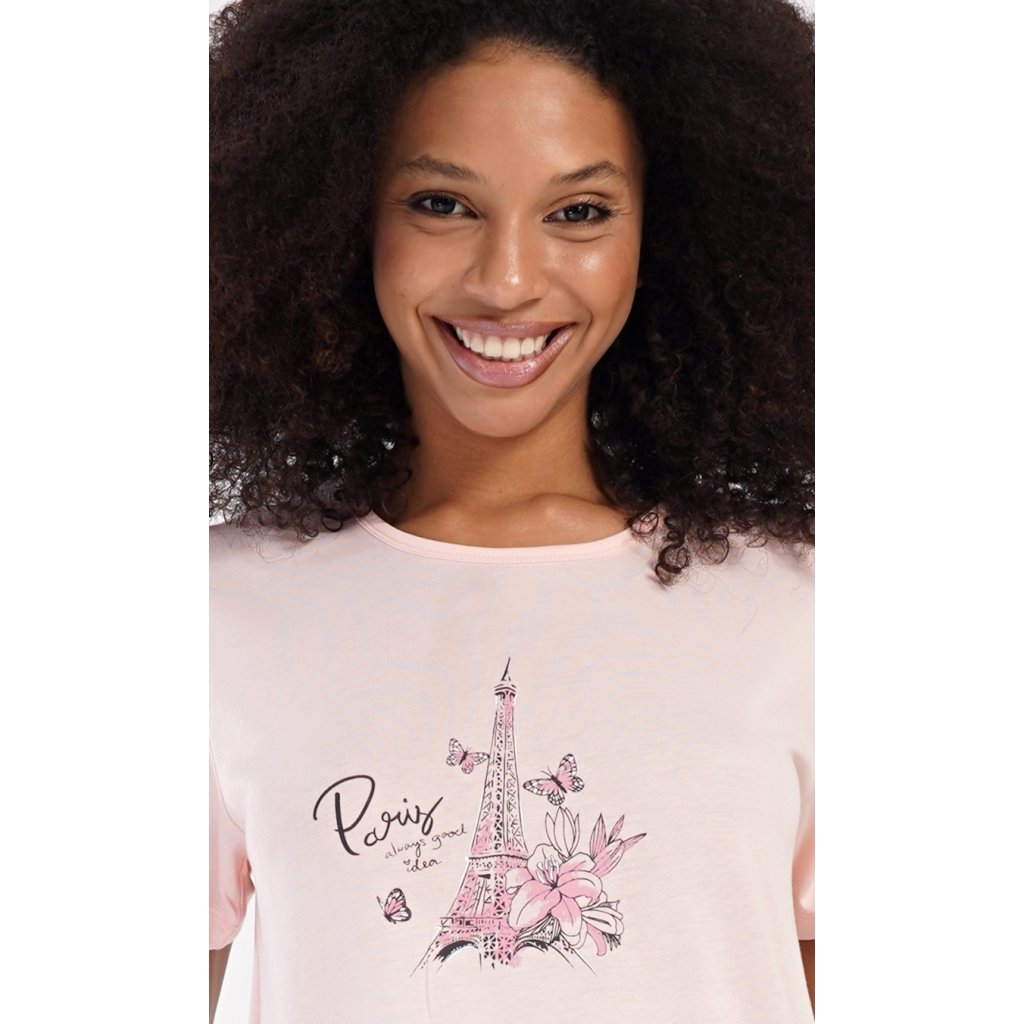 Dámské bavlněné domácí šaty s krátkým rukávem Paris. Domácí jednobarevné šaty s kulatým výstřihem a kapsami zdobí na hrudi obrázek Eiffelovy věže a nápis Paris. Použitý bavlněný materiál je příjemný a poddajný na dotek. Šaty jsou pohodlné, využijete je téměř při všech volnočasových aktivitách. Jsou vhodné na spaní i na denní nošení .