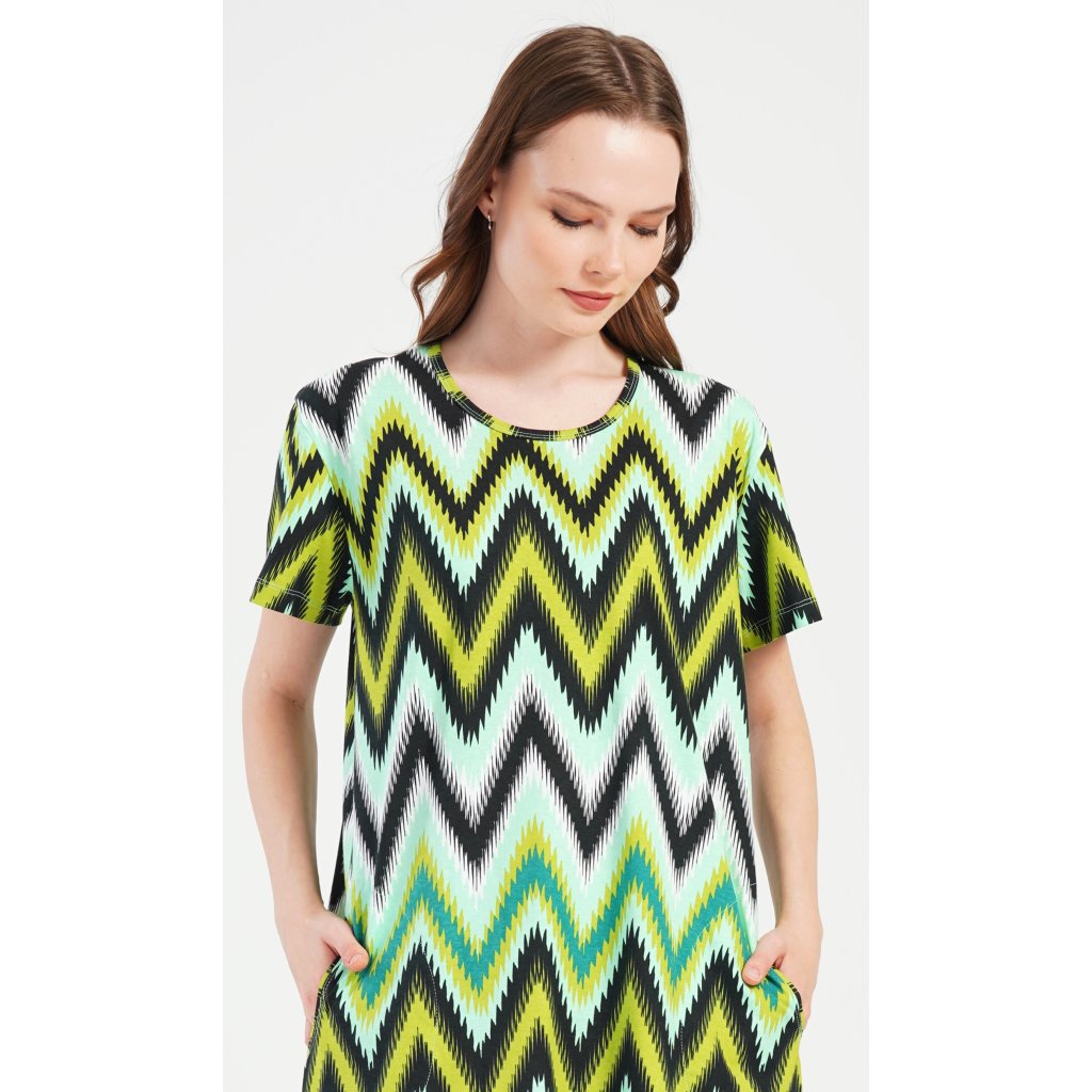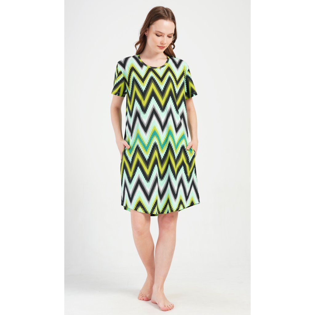 Dámské bavlněné domácí šaty s krátkým rukávem Zuzana. Domácí šaty s geometrickým zorem mají kulatý výstřih a praktické kapsy. Použitý bavlněný materiál je příjemný a poddajný na dotek. Šaty jsou pohodlné, využijete je téměř při všech volnočasových aktivitách. Jsou vhodné na spaní i na denní nošení.